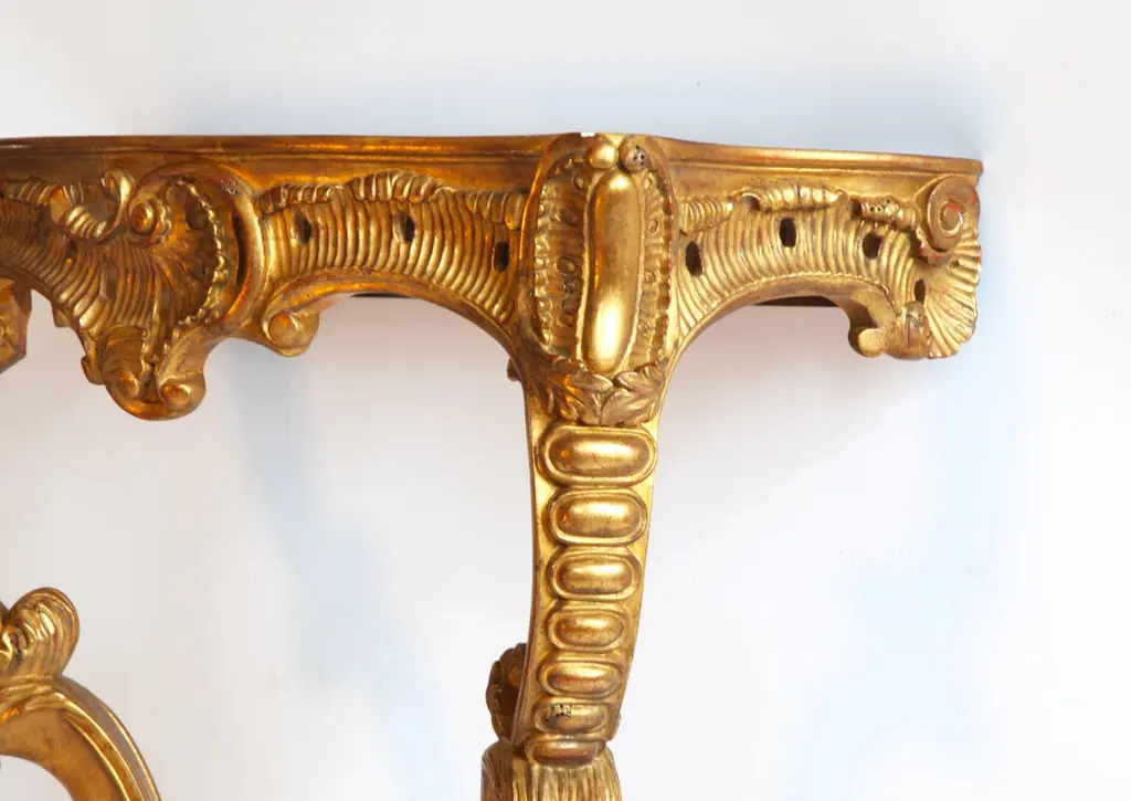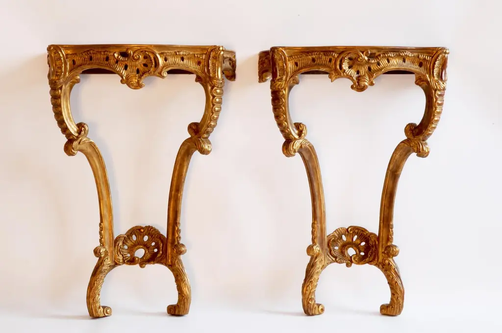 Pair Of Hand Carved Rococo Style Giltwood Consoles Made By La Maison London