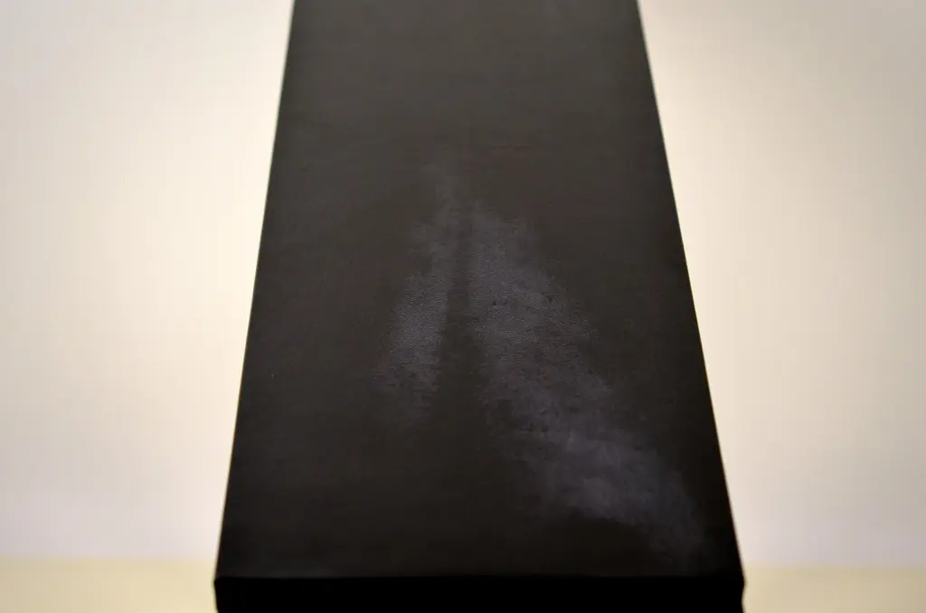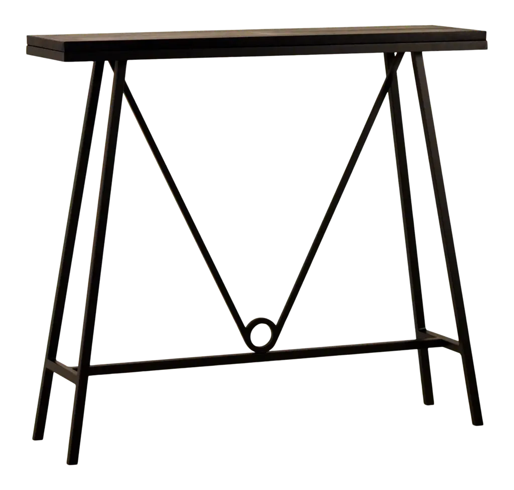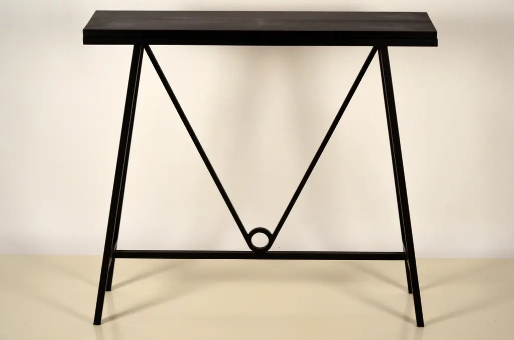 Pair of 'Trapèze' blackened steel and goatskin consoles by Design Frères.