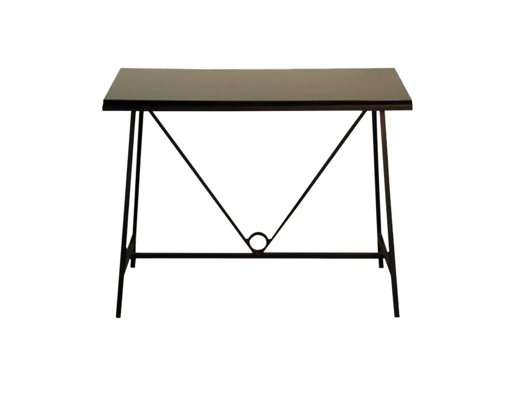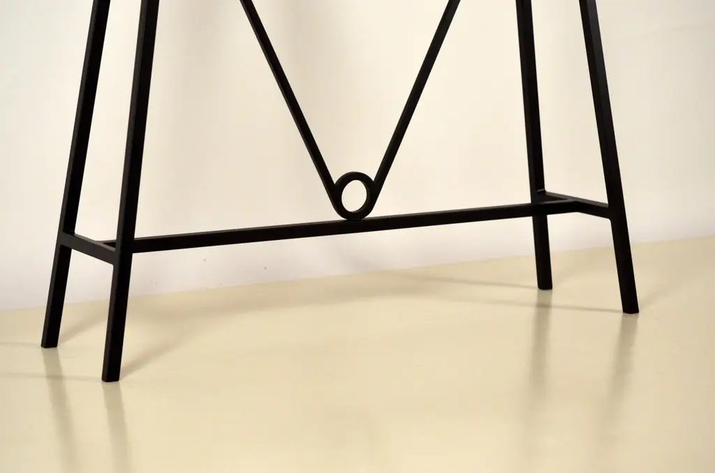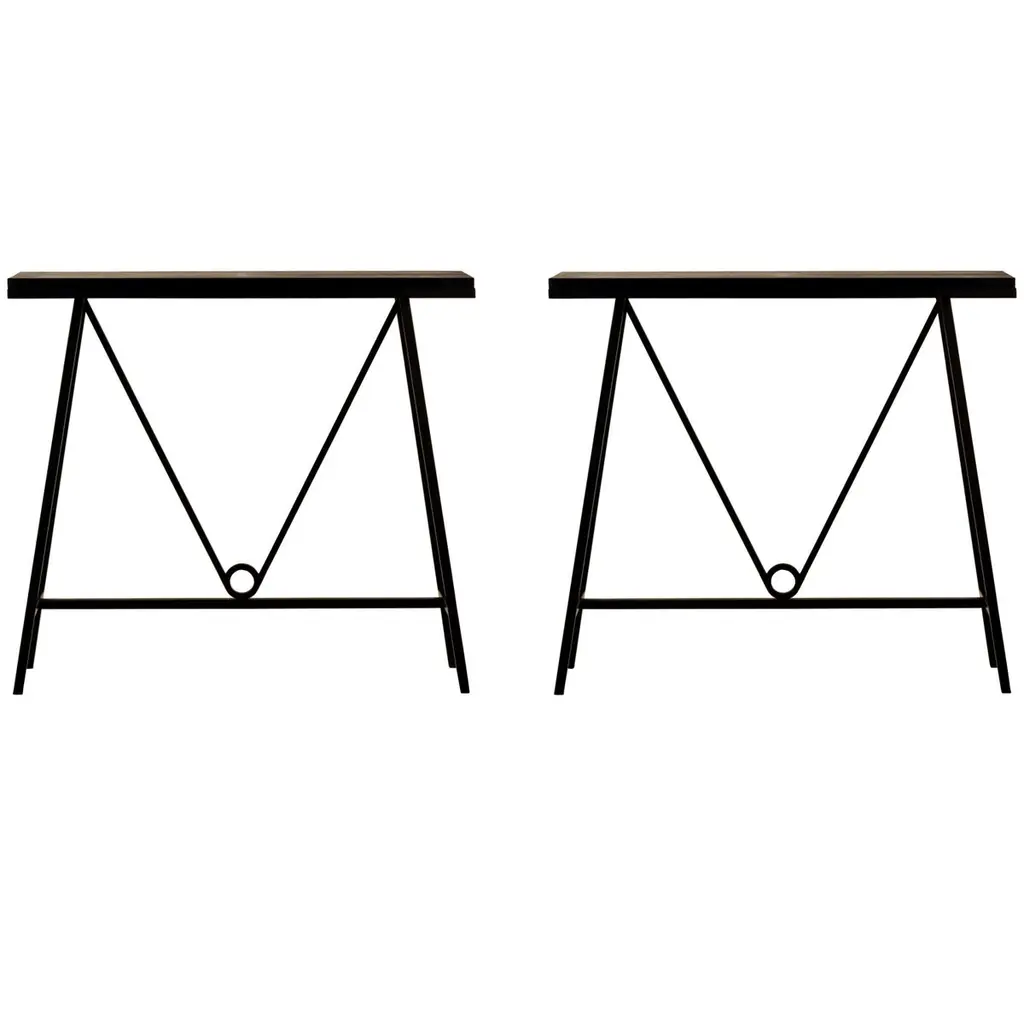Pair Of 'Trapèze' Blackened Steel And Goatskin Consoles By Design Frères