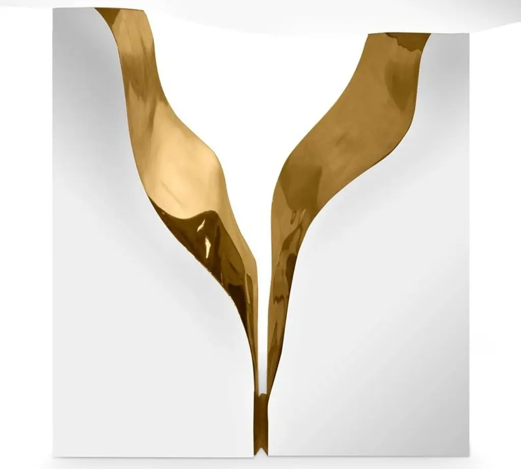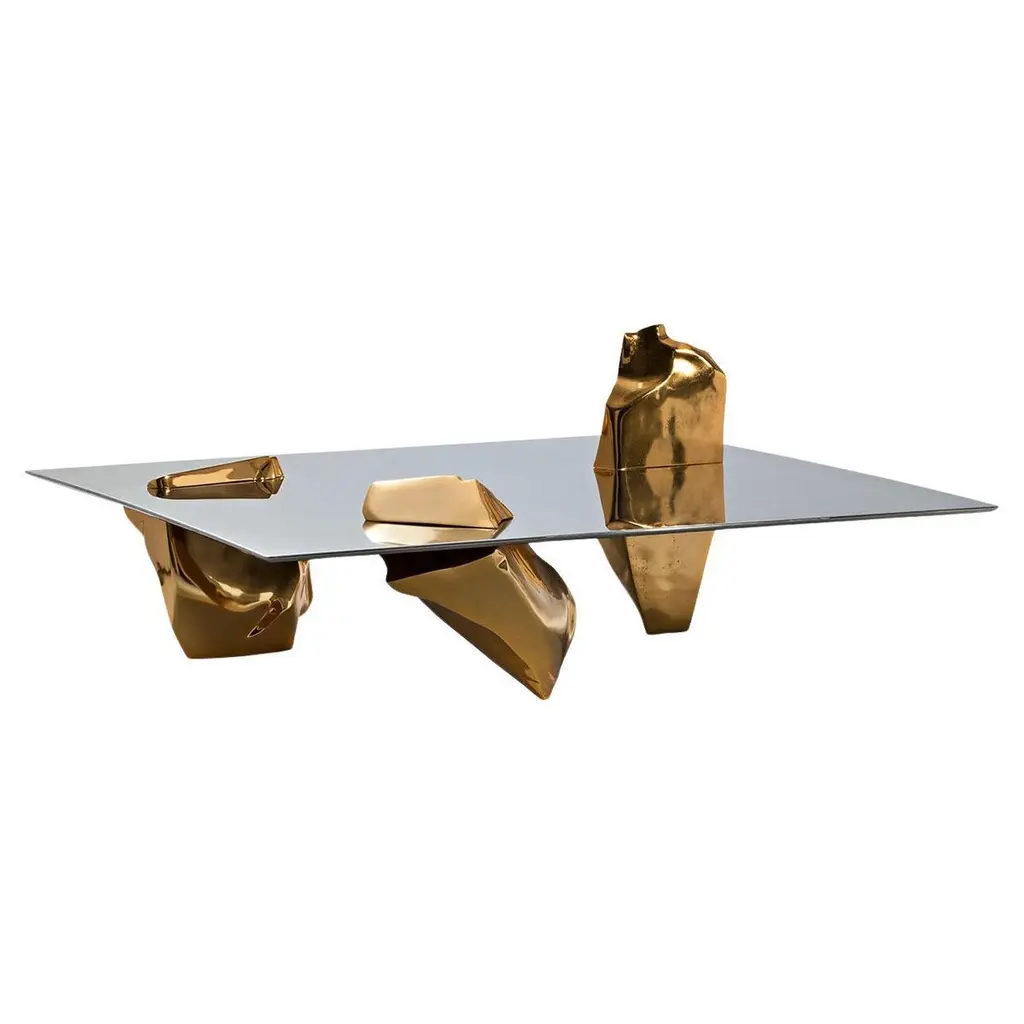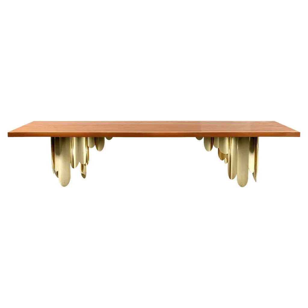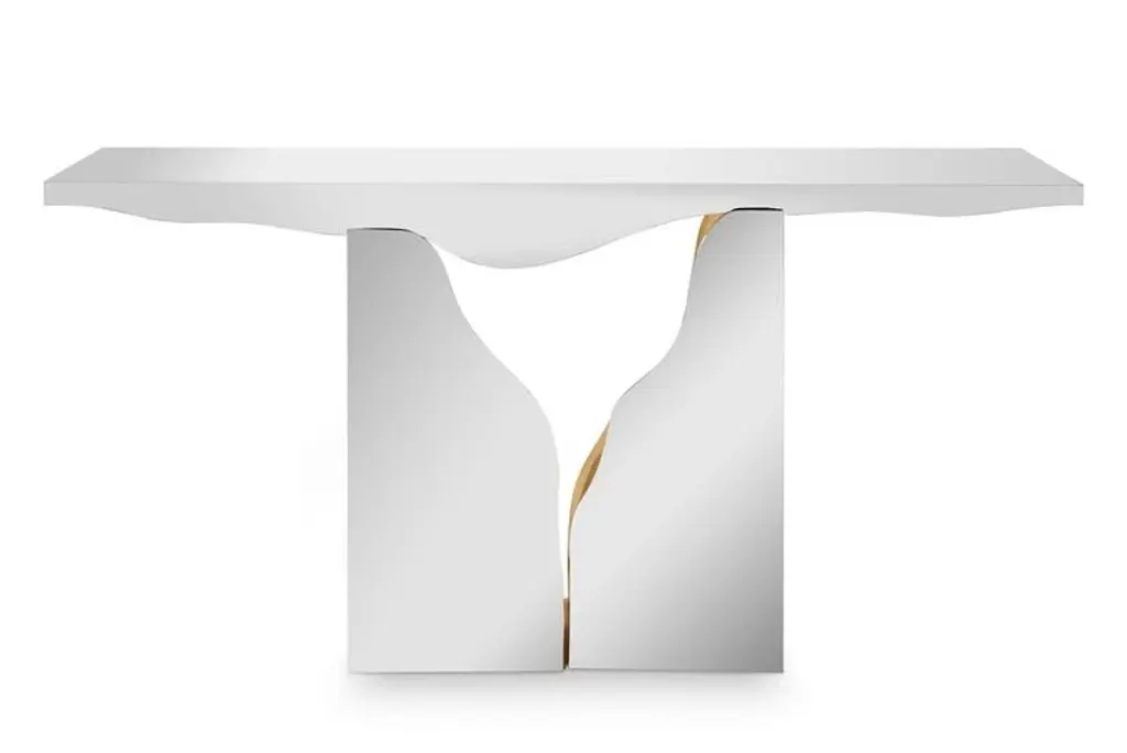 Console table Paradise features a mahogany structure with its inside finished in polished brass, exterior finished in polished stainless steel.