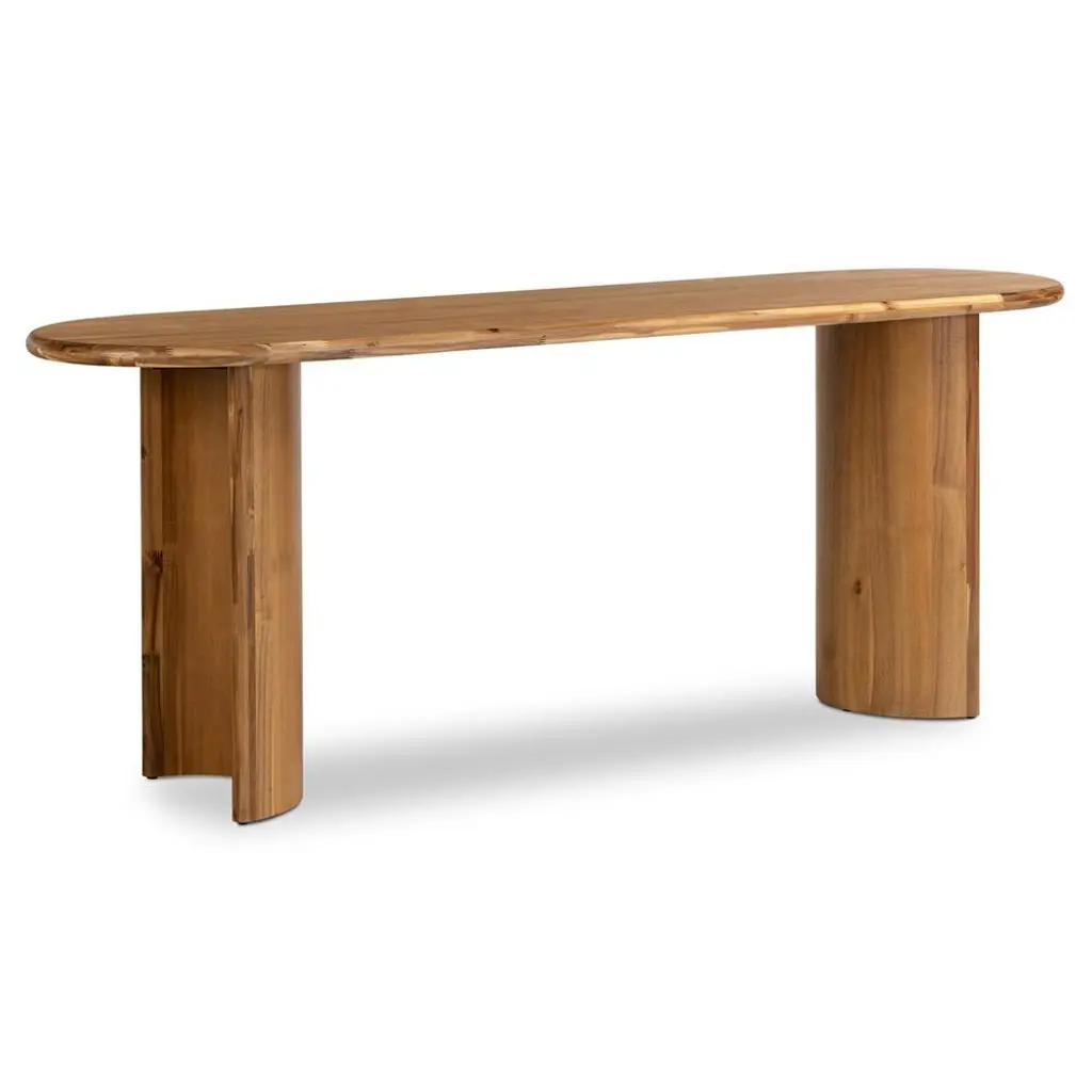 Paris Rustic Lodge Light Brown Acacia Wood Oval Console Table - 78"