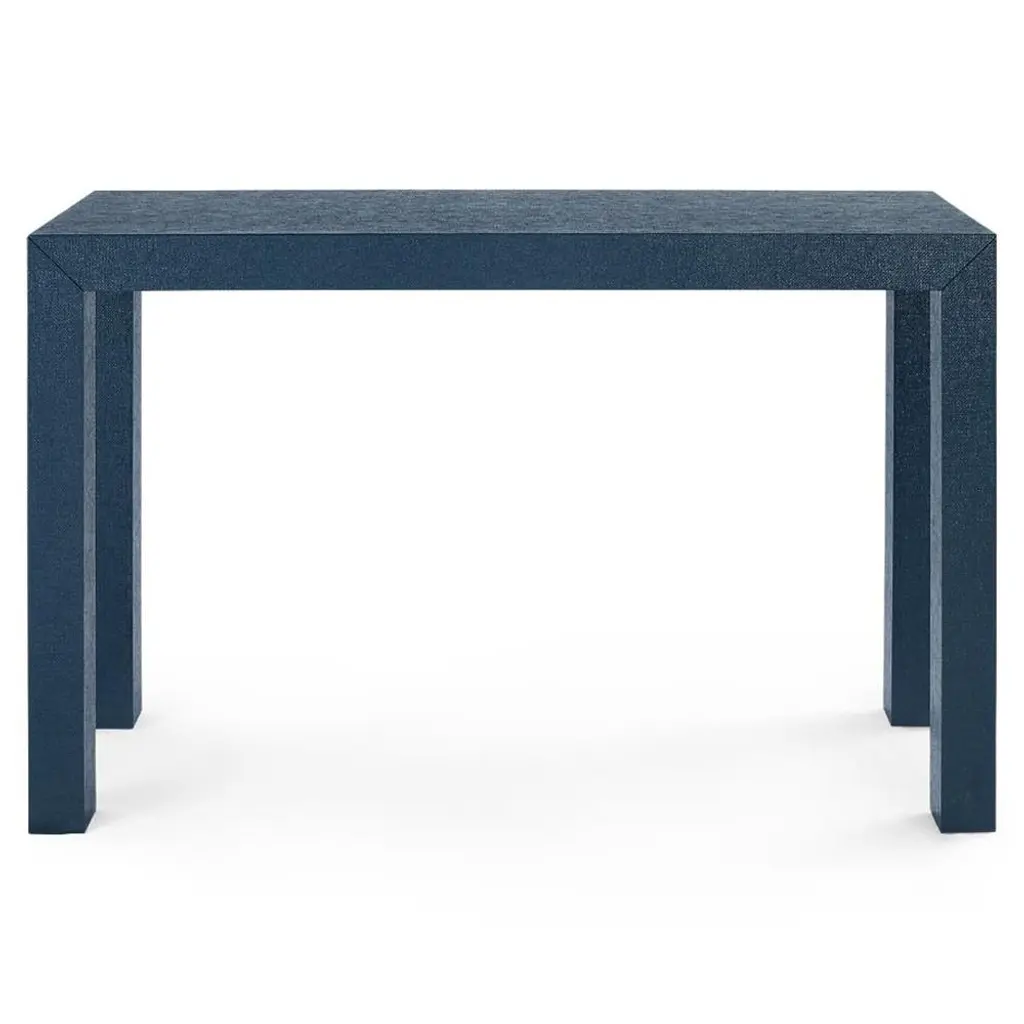 The Parsons Collection exemplifies Villa & House’s commitment to bringing luxury to life through timeless silhouettes, unique materials, and unmatched craftsmanship. In the Parsons Console Table, a classic shape is reimagined through a contemporary lens, with stout lines and structured proportions giving its pared-down profile a splash of modern personality. In lieu of ornamentation, the piece showcases a sumptuous grasscloth finish in navy blue, sealed with lacquer for subtle shine and layered tactility. The Parsons’ sophisticated simplicity and uniform color make it the perfect canvas for personalized decor and display. Dress it up with gilded accents in a lavishly decorated space, or embrace its minimalism for modern schemes. It’s just waiting for your creative touch.