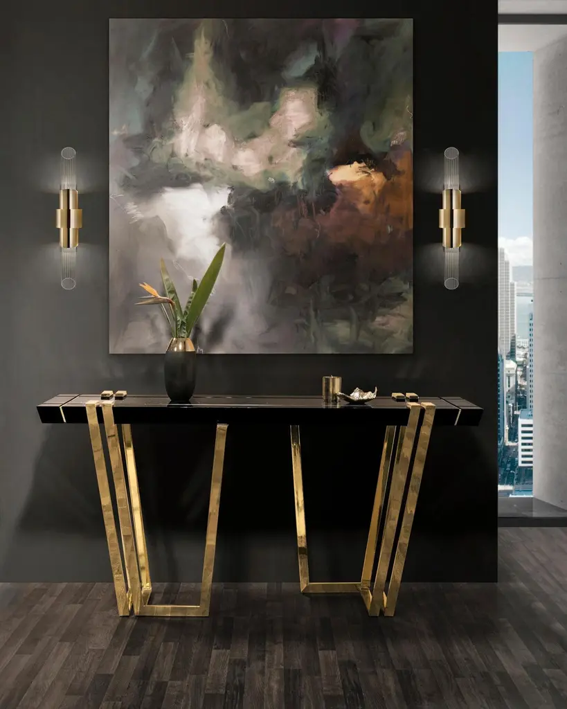 Partenon Console Table With Black Marble Central Top