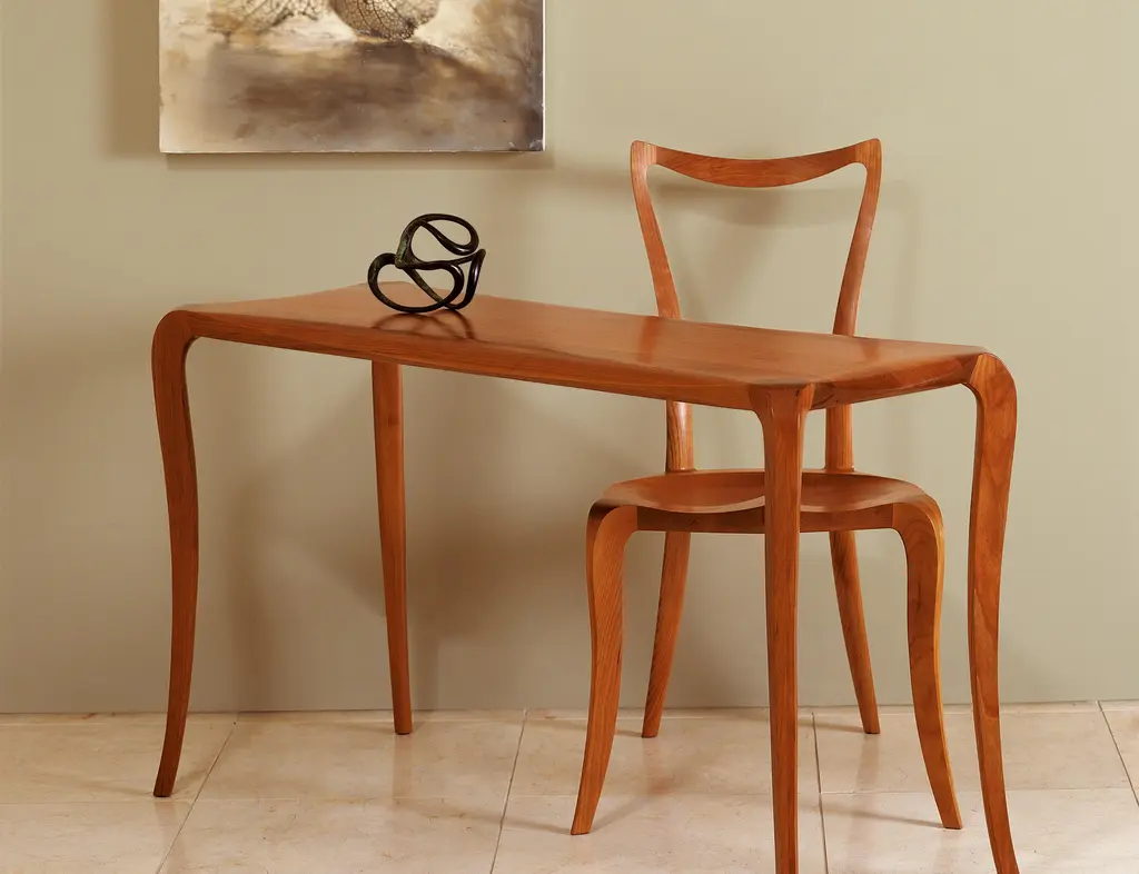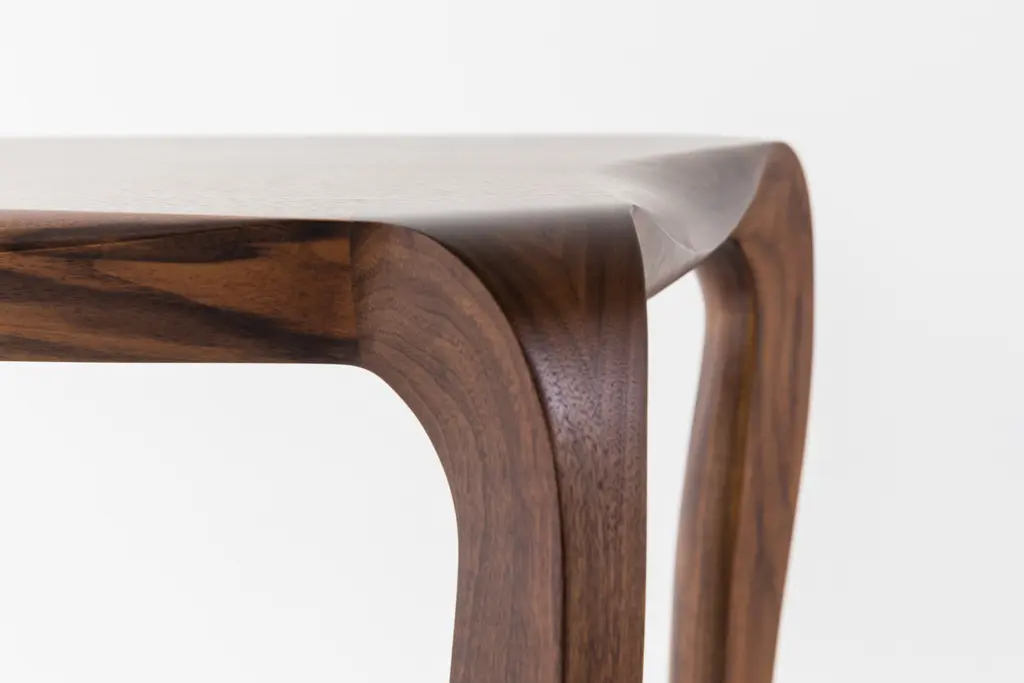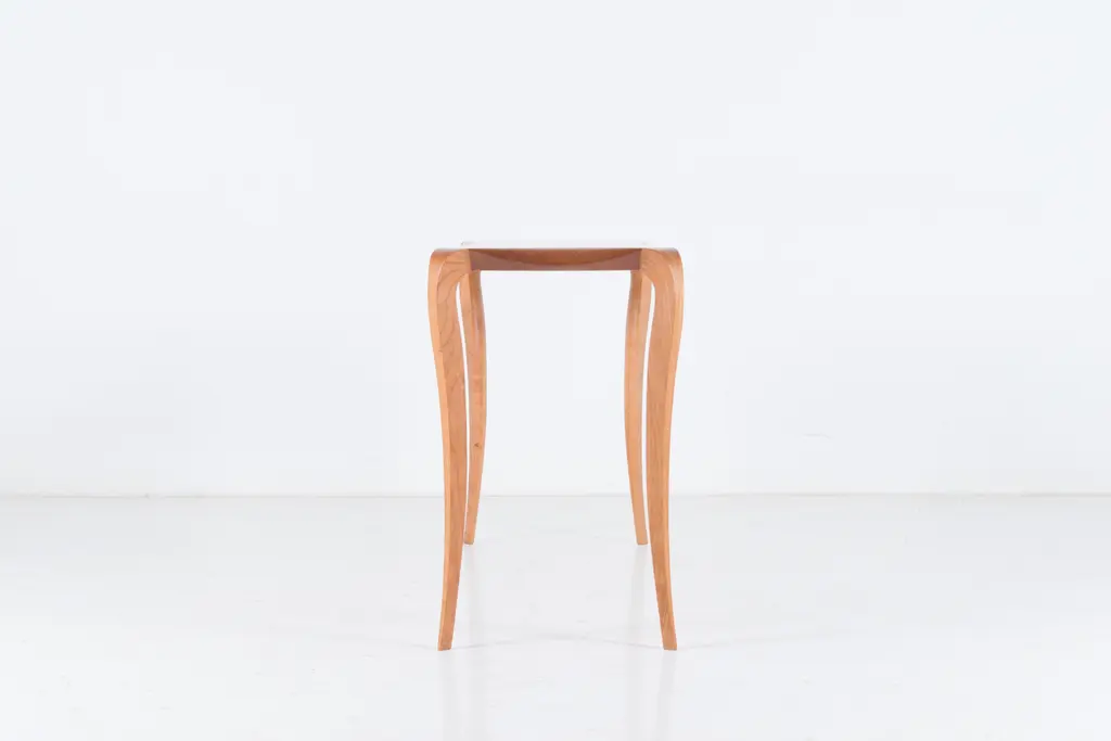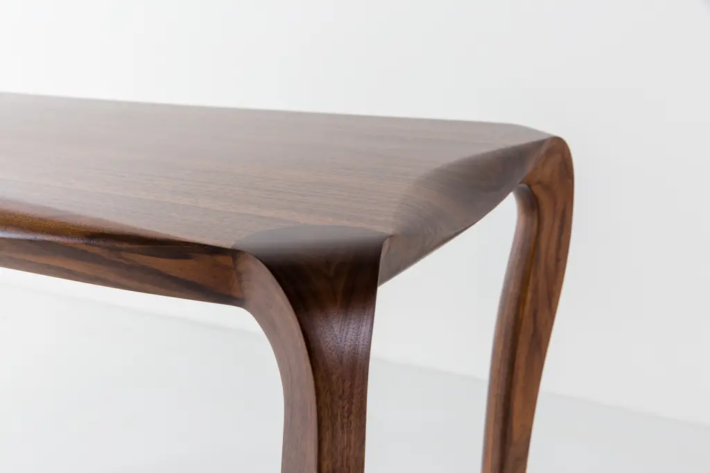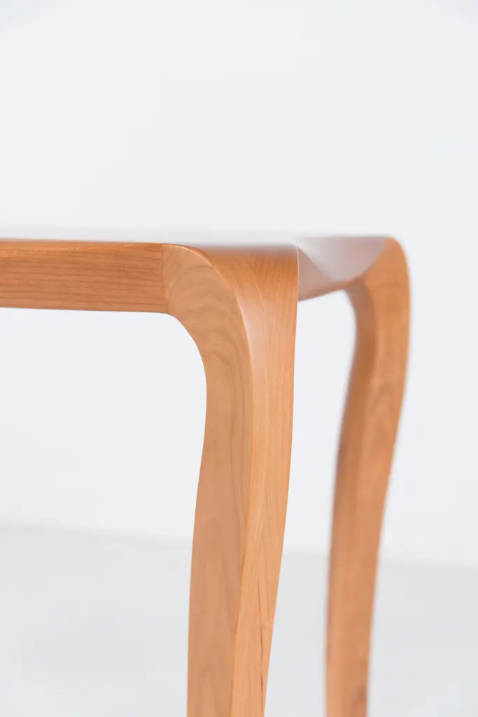 The Pasadena Hall Table is suitable for use in a hallway, as a writing desk, vanity, or side table. Complex to build, the table requires hours of sculpting to complete. Gentle, complex curves and shaped legs join the tabletop visibly – yet seamlessly to the touch – using joints that require a steady, experienced hand to produce extraordinary beauty and strength.