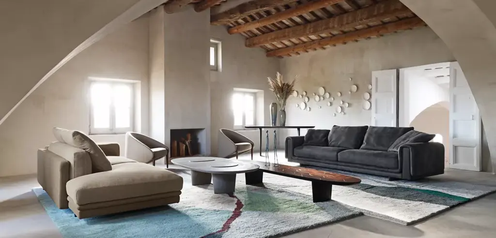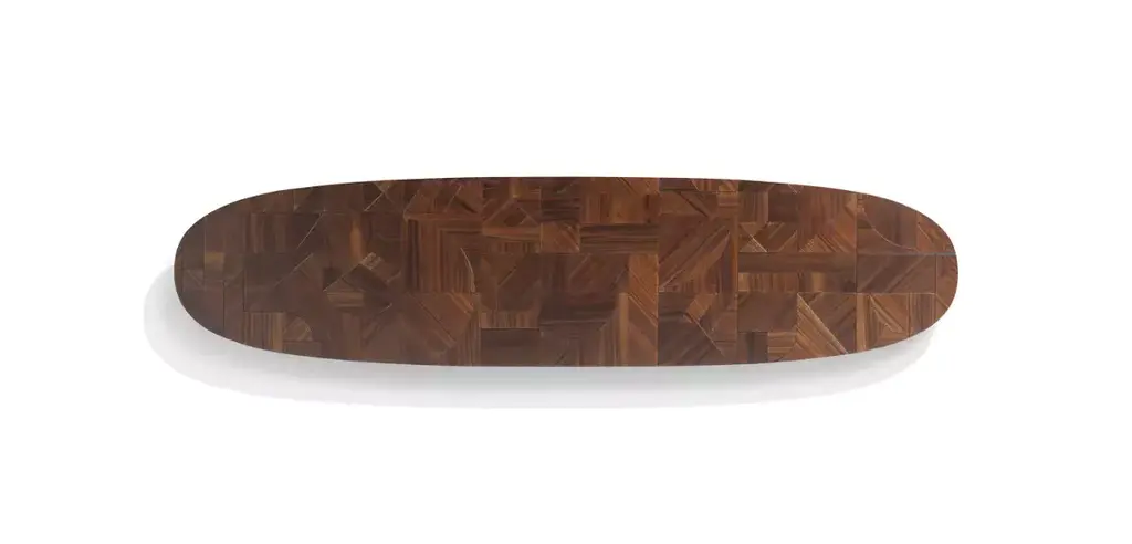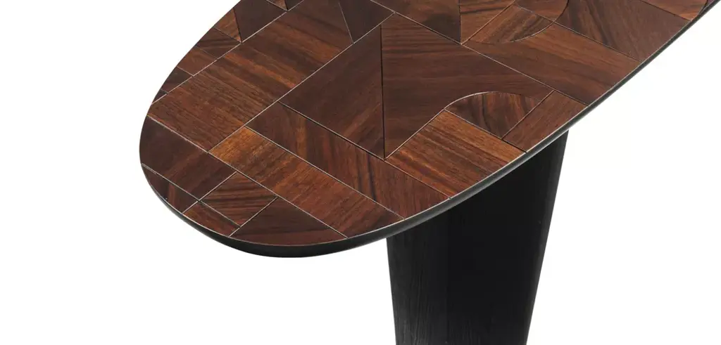 With NATIV, Raphael Navot has created for Roche Bobois a collection with natural and organic lines: a dialogue between nature and culture, marked by geometric mastery and spontaneous forms, using noble materials and crafted in an artisanal manner. The Patchwork tables are a stunning example of contemporary woodworking: set within an oval, the assembly features an extremely complex arrangement of numerous wood pieces, each with a unique grain pattern, and the design never repeats. The joint that highlights the pattern can be filled in for dining tables or left open for cocktail tables and consoles. Behind these creations, one senses the skill of the artisan…