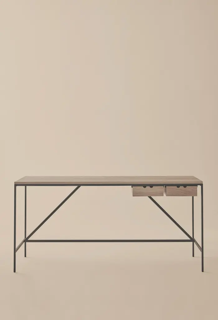 Paul Mccobb Cache Console For Karakter The foundation of the Cache series, part of Paul McCobb’s extensive Planner series, is a beautifully simplistic and easy table with slim and straight steel legs, stripped from any details or ornament, leaving only small drawers that can be mounted individually or grouped on either side of the table for small keepings. The series is complimented with the matching Desk Organiser with two drawers and a shelf supported by a steel frame.A prominent figure in American mid-century design, Paul McCobb conceived the Planner series in the 1950s, a modular furniture series that brought modern design into middle-class American households. The aesthetic attribute of McCobb’s design is sleek and unadorned and at the same time warm and approachable. With its versatility and purity of form, the Planner series became one of the most successful commercial furniture lines of its era.Product MaterialFrame in steel with textured black powder coating, table top in oak veneer with clear lacquer, optional drawers in solid oak with clear lacquerMeasurements Height72 cmWidth56 cmLength152 cmGeneral specificationsEnviromentIndoorRequires assemblyYesImportant information regarding images of products:Please note that some of the images show other colors and variations of the model, these images are only to present interior design proposals. The item that is selling is on the first image.Important information regarding color(s) of products:Actual colors may vary. This is due to the fact that every computer monitor, laptop, tablet and phone screen has a different capability to display colors and that everyone sees these colors differently. We try to edit our photos to show all of our products as life-like as possible, but please understand the actual color may vary slightly from your monitorAbout the Design: Paul McCobb (1917-1969) was one of the leading contemporary furniture designers on the American design scene in the 1950s and 1960s. Over a timespan of twenty years he designed an impressive range of multi-functional furniture, accessories and textiles, as well as several notable interior design projects. McCobb often offered a playful take on traditional forms with hints of Scandinavian craftsmanship and international style clarity, often made with affordable and robust materials such as iron, solid wood and durable upholstery. Since McCobb’s early death in 1969 his designs have not been in production, but are now making their way back.About the manufacturer:Karakter is a Danish design company founded on a spirit of exploration, courage and an uncompromising attitude to quality. Rooted in the Scandinavian design tradition with an international outlook, Karakter presents a portfolio of furniture, lighting and objects that is relevant, honest, expressive and sometimes playful. Aspiring to build an enduring legacy, they work with contemporary designers such as Aldo Bakker and PlueerSmitt and present works by the masters Bodil Kjær, Achille and Pier Giacomo Castiglioni, Paul McCobb, Joe Colombo and Angelo Mangiarotti. Each piece has a clear, undeniable expression, ensuring it pride of place in private homes and public spaces worldwide.