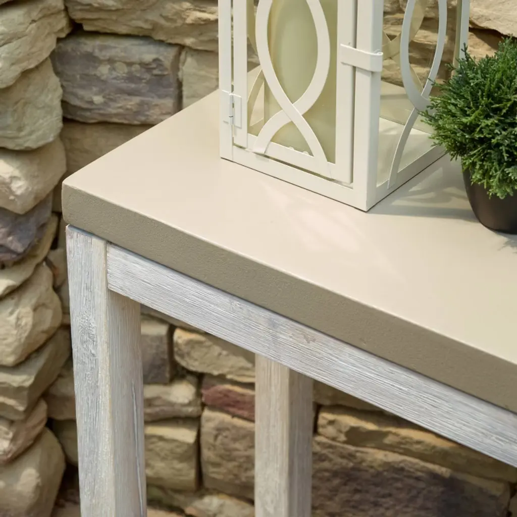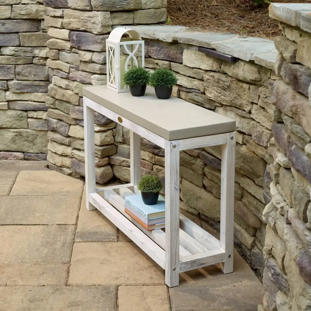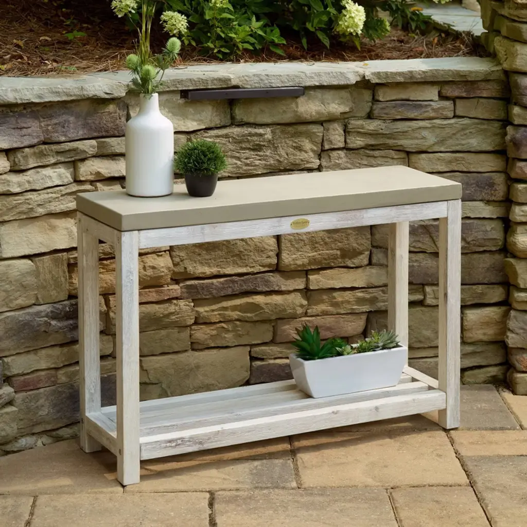 Add a beautiful finishing touch to your patio, porch or front hallway with this contemporary styled cement and wood console table. Made from high quality cement and acacia wood, this clean lined table has two shelves that lend themselves nicely to both decor and functionality. Use this to display items in your indoor spaces, or out on the patio for a serving table for the perfect party. Each is made individually, so slight color and size variances may occur. Add a fresh, new look to your home today!