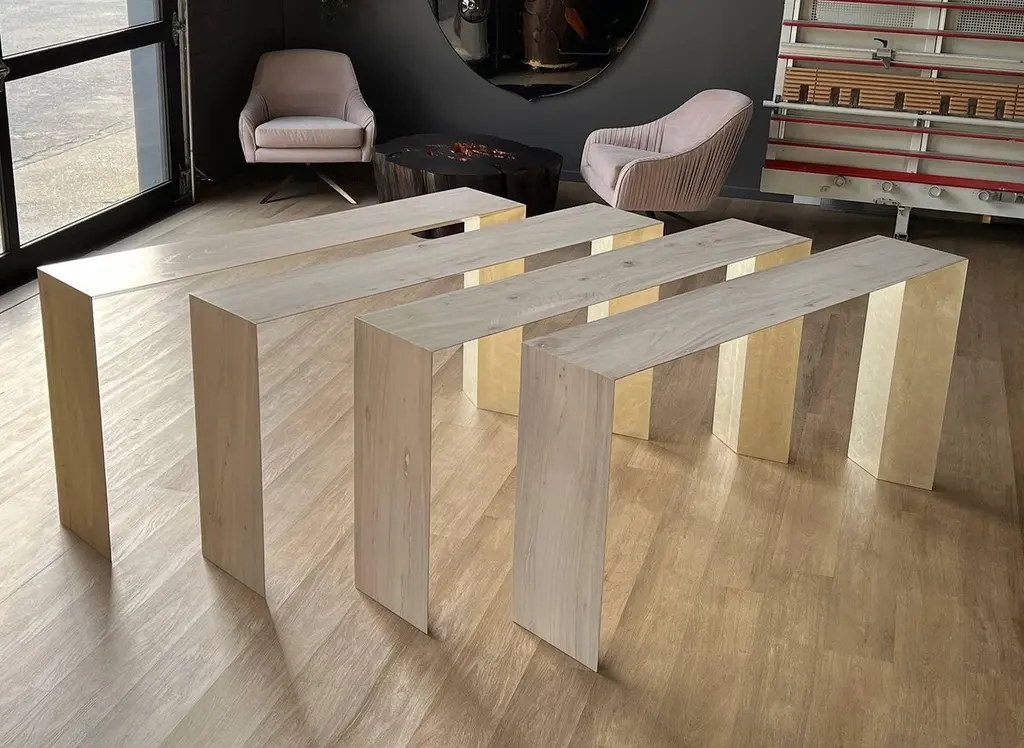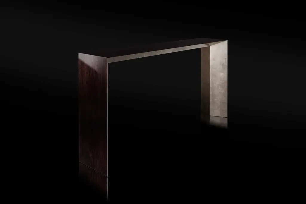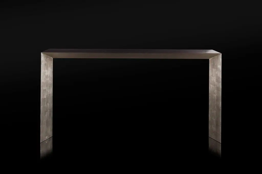 If DIOR says so… Introducing the PHANTOM Console.A groundbreaking design, bold and captivating, created to shatter the belief that “contemporary” must automatically equal cold and without soul. The solid wood console exhibits beautiful, uninterrupted flowing grain which is further accentuated by the crisp waterfall joinery. Anchored by the striking metallic glow of the underbelly, and with impossibly thin edges, it is no wonder that one of the leading fashion houses of the world has commissioned 35+ consoles for its boutiques around the world. Impeccable craftsmanship and luxurious finishes are evident everywhere you look- the exterior is finished in Ebonized Walnut and the lavishly adorned underside is finished in White Gold Leaf.64”x13”x32”