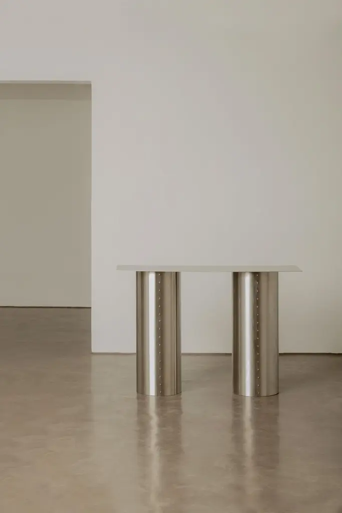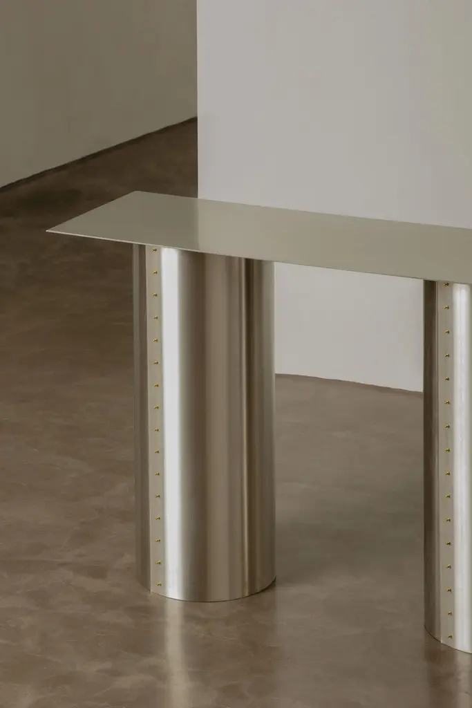 Through a fusion of functional and sculptural objects, Pedro channels the aesthetics of astronomical instruments and the cultural fascination with space exploration. Inspired by his experience in Brasília, under the influence of brutalism and Oscar Niemeyer’s organic forms, the designer explores materials and shapes that evoke an advanced technological era, marked by contrasts between the organic and the synthetic, the historical and the futuristic.The “Satellite” collection stands out for its use of pairs of antagonistic materials that complement each other, such as stainless steel and paper, natural resin and leather, bronze and fabric, creating a dialogue between roughness and softness, industrial and artisanal. This choice of materials not only highlights visual and tactile contrast but also symbolizes the duality between the coldness of technology and the warmth of human nature.