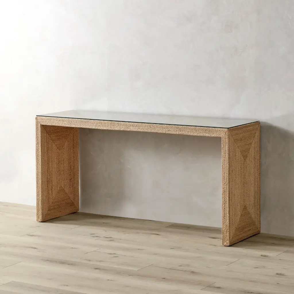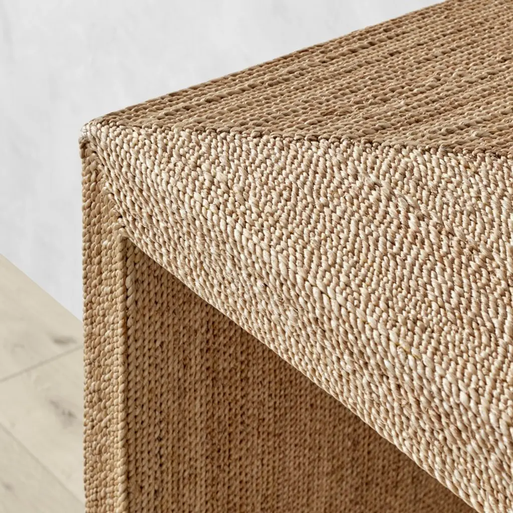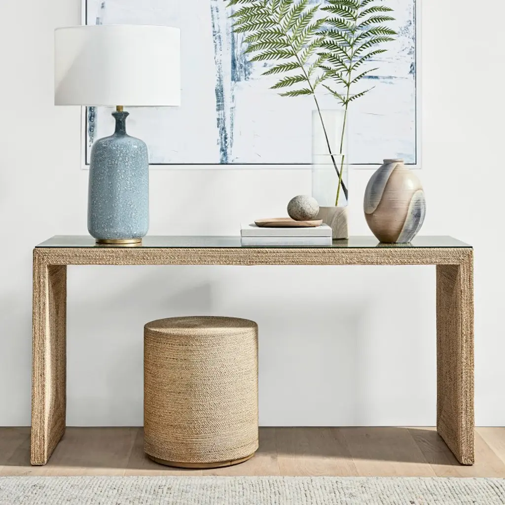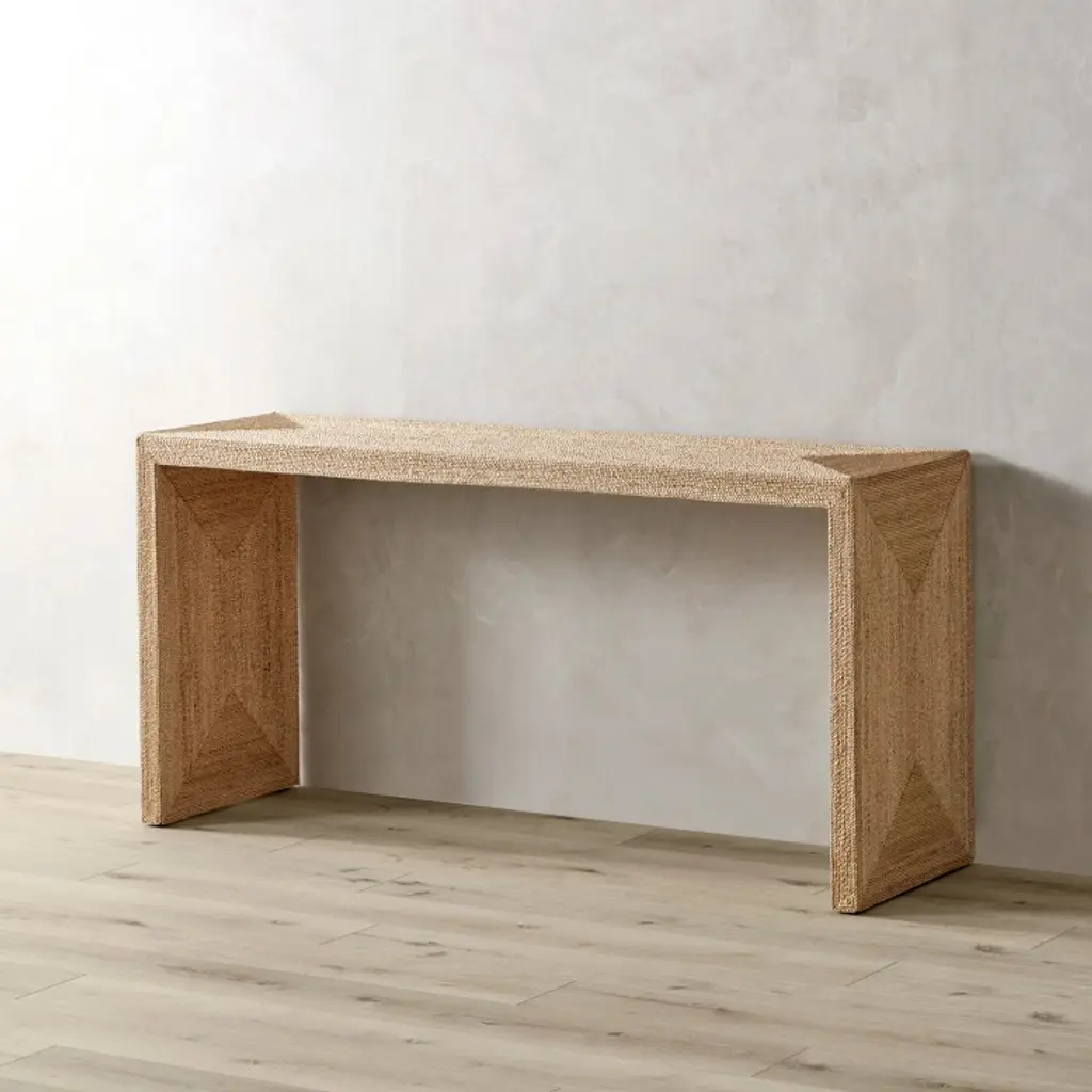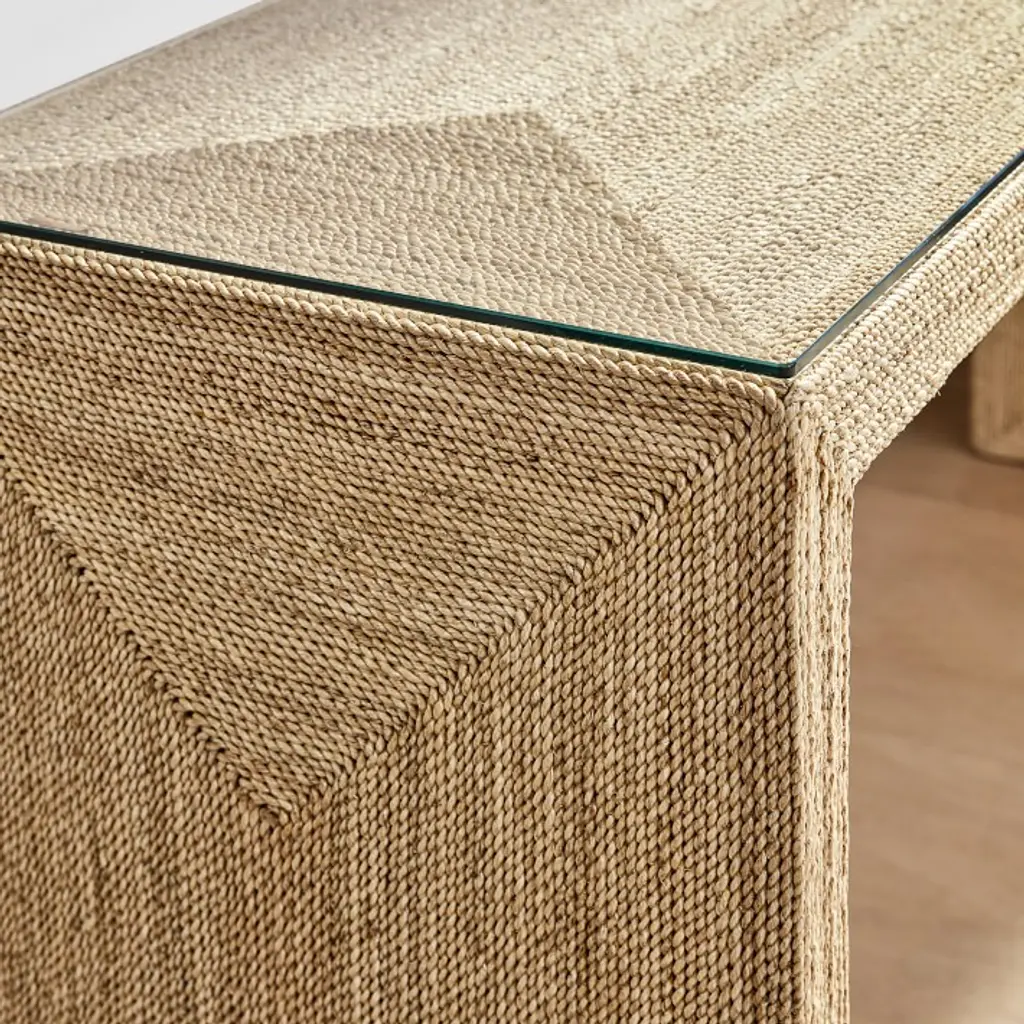 The rich texture and golden tones of natural abaca imbue our Point Reyes console table with organic beauty. Artisans wrap the low-profile design in the handwoven vines, creating allover detail that complements modern, classic and coastal decor.