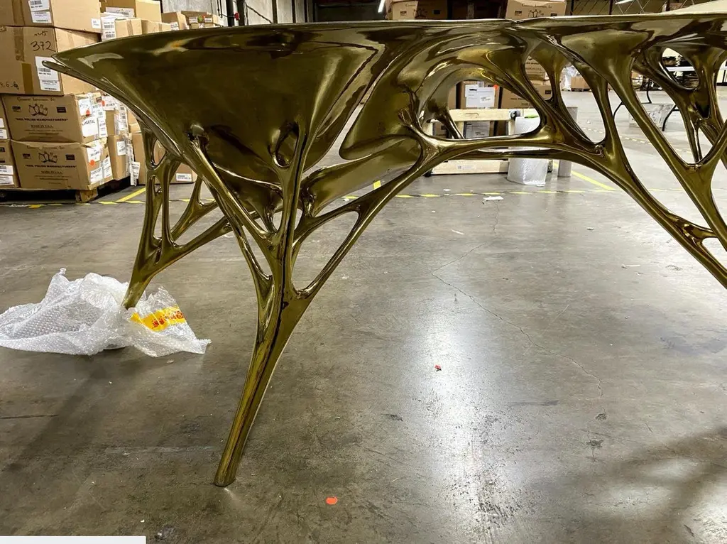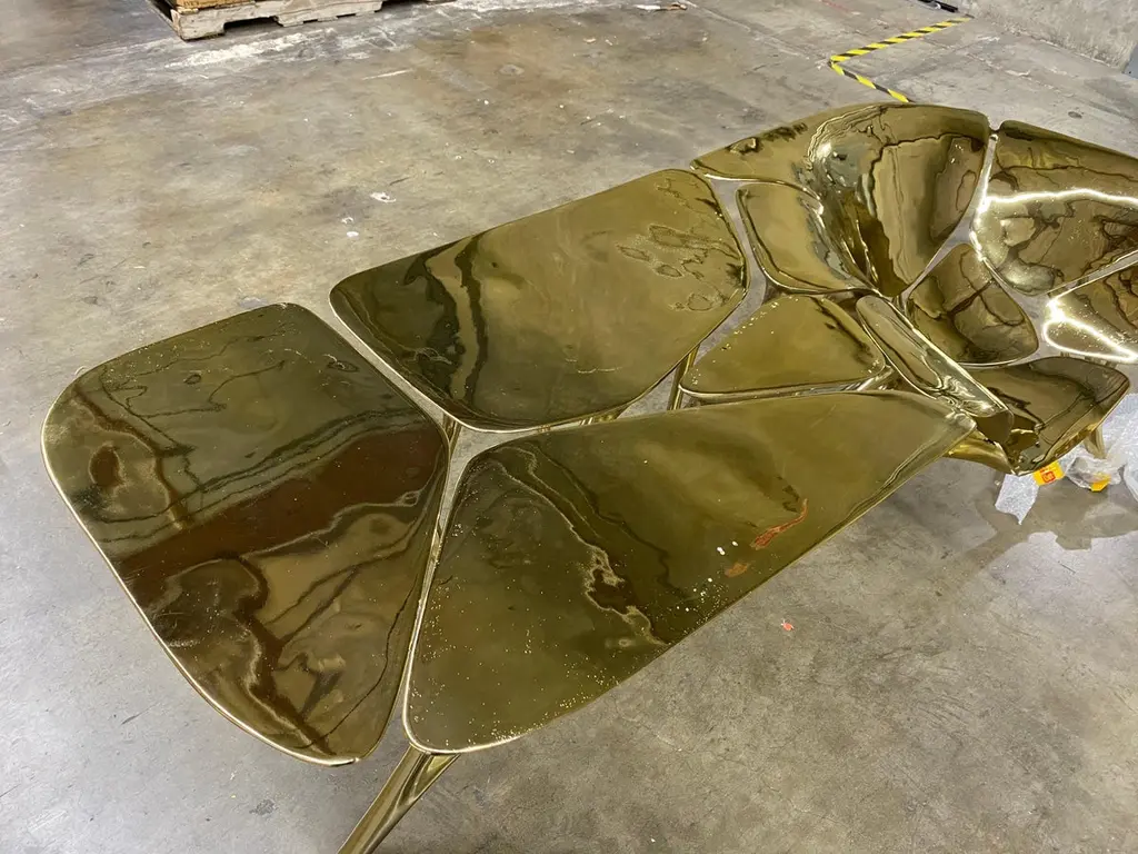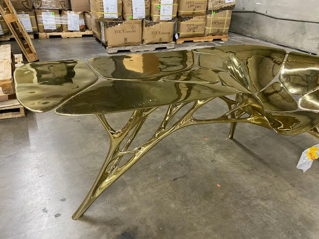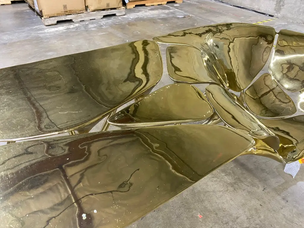 Polished Brass Lotus Console Table/telephone Table/entryway Table In Gold Color