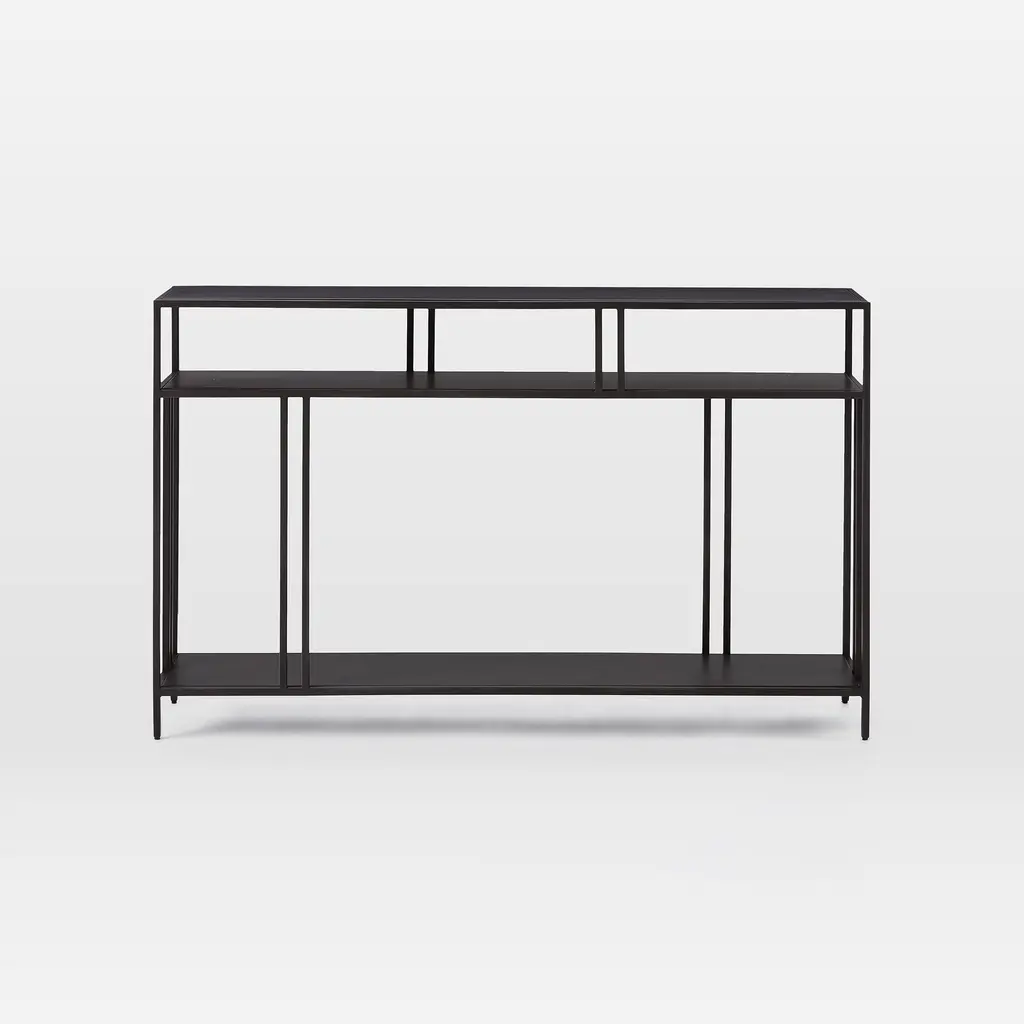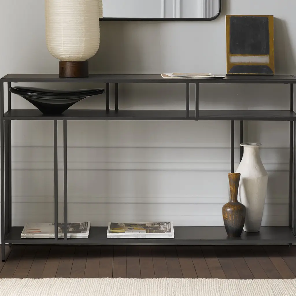 Streamlined and airy in design. Turns books, trays & more into an artful display. Designed with staggered vertical lines. Contract Grade, so you know it's built to last.
