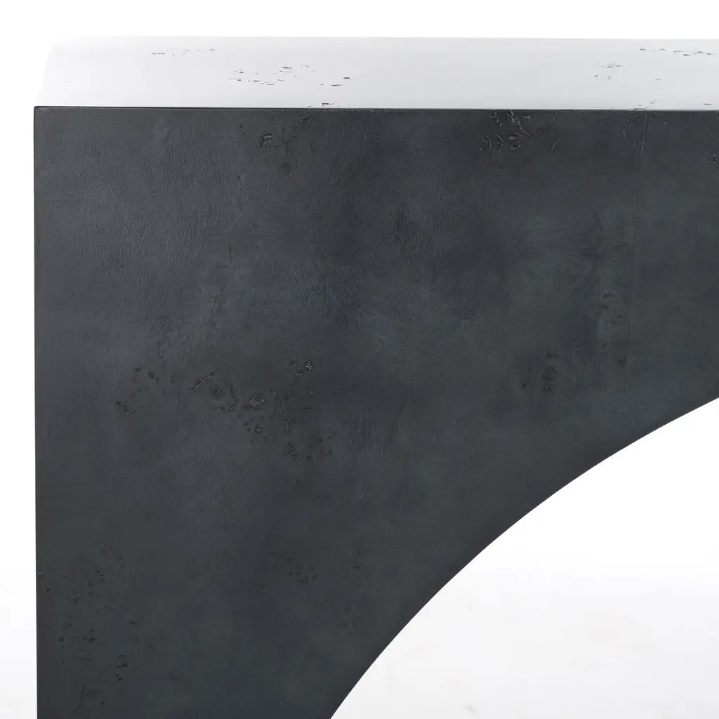 Bring any corner to life with the warmth and grace of our Quinlee console table. The refined and stately profile of our console is updated with rich organic textures. Its minimalist design highlights an eye-catching arch to add architectural grace to any room. Covered in the rich textures of burled Mappa wood veneer, it attains a stunning visual impact. Adding elegance and luxe warmth to your home, our console table makes a stunning statement in an entryway, living space, or bedroom.