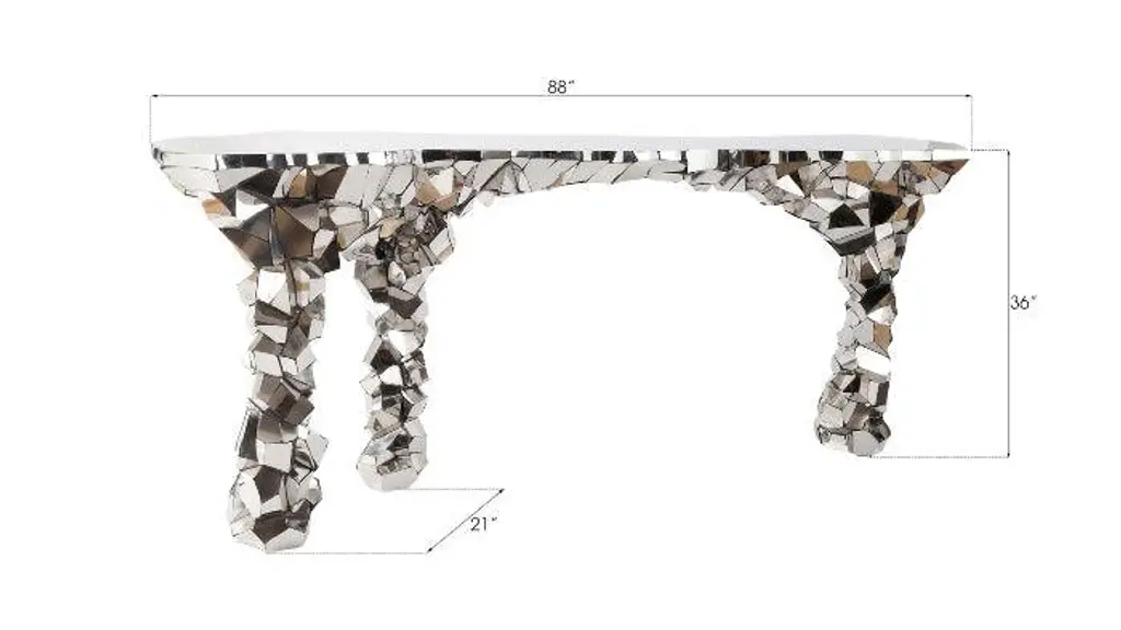 Mirror Polished Stainless Steel intricately cut and shaped into fluid geometric forms to composed beautiful reflective pieces that capture light.