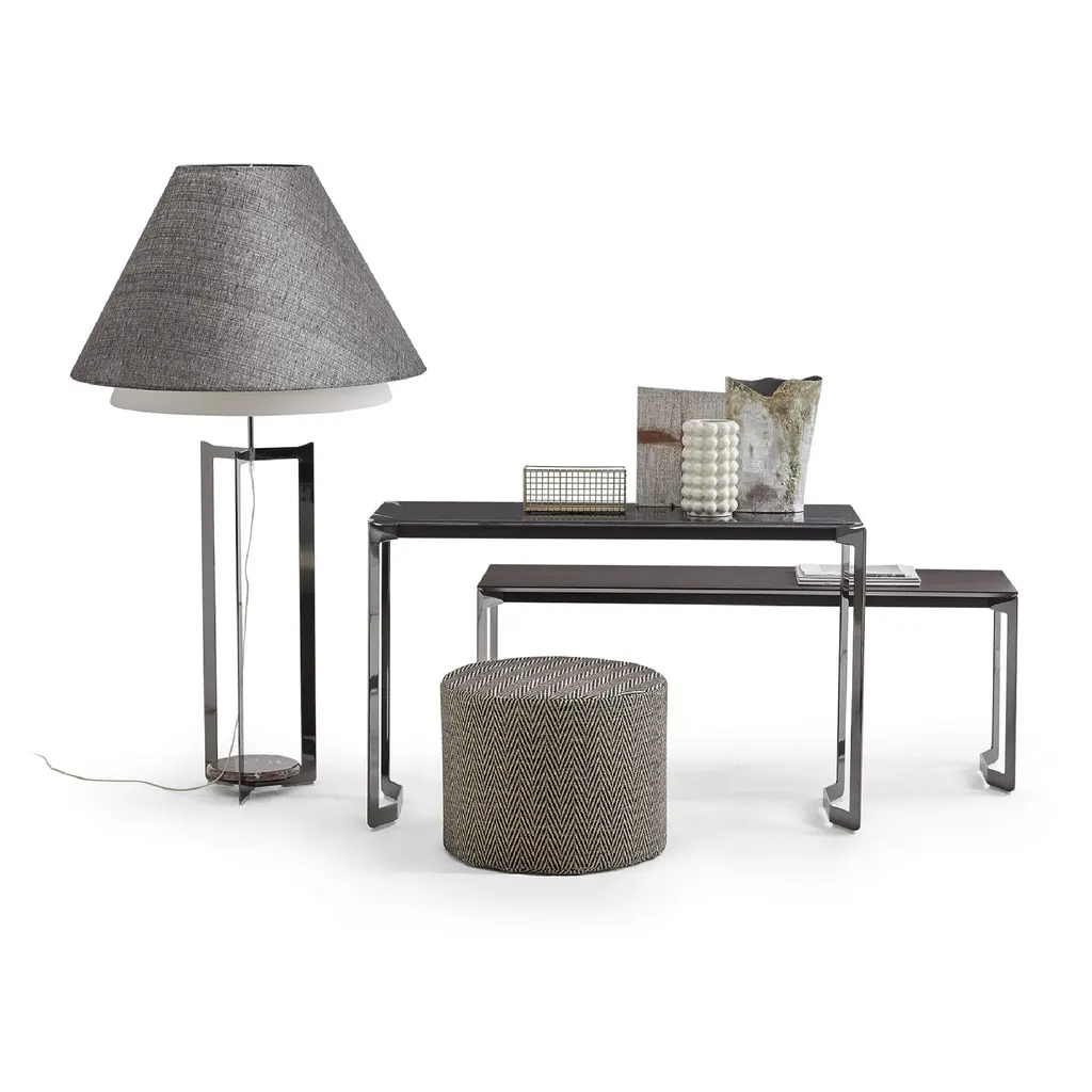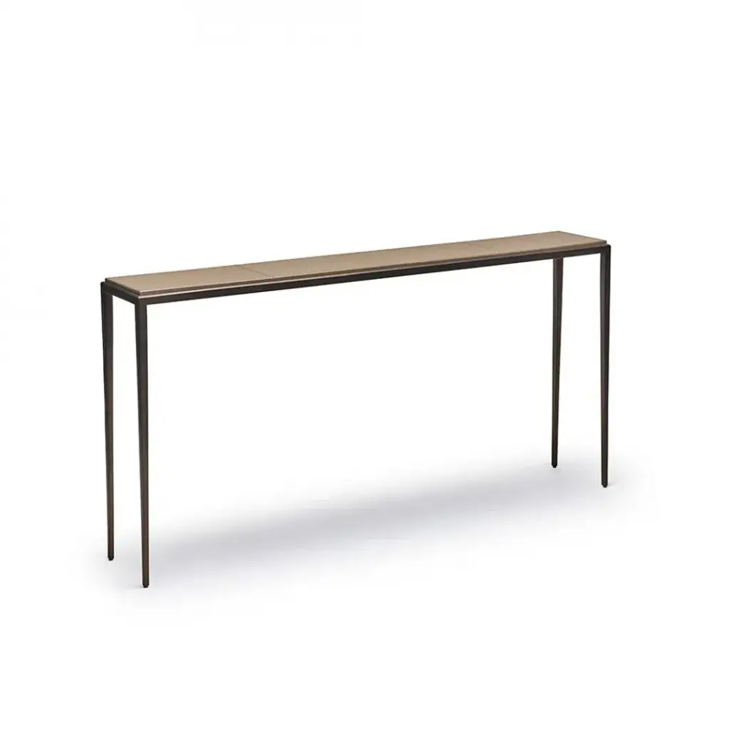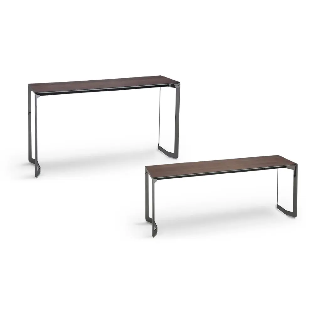 Elevate your space with the Rectangular Modern Console Table by Dema Malibù. Featuring a sleek metal frame and a variety of luxurious top options in marble or dyed ash veneer, this console table exudes sophistication. Topped off with a black nickel-plated finish and non-slip feet for stability, this piece is a must-have for any stylish home.