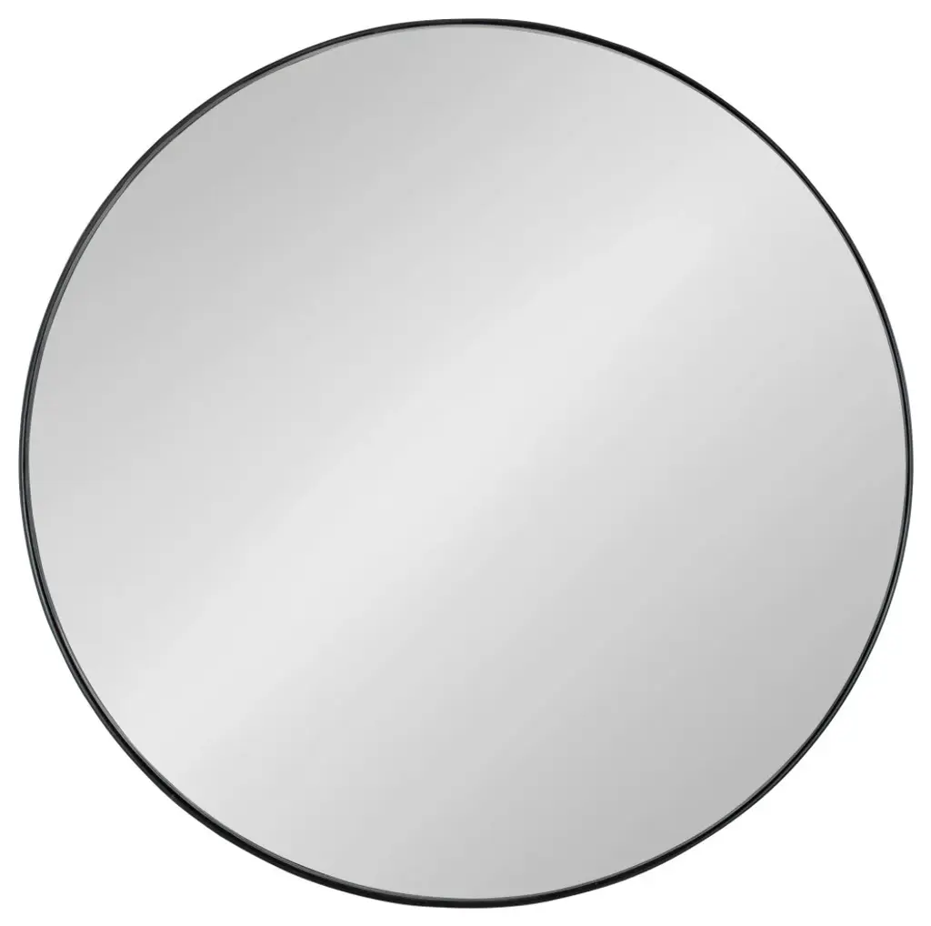 Create a decadent wall display using the lovely Rollo mirror from Kate and Laurel. The Rollo mirror takes inspiration from minimalist design techniques, utilizing a geometric round shape to command attention in any room. The frame itself was made from a robust iron material, giving the Rollo a refined detailing that will last for multiple years of display. The stand out black finish on the iron frame makes this mirror capable of blending into various rooms. Hang the Rollo mirror above our fireplace, over a sink or vanity, or a console table in your entryway. Adding a mirror to your home creates a sophisticated wall display and draws in more light and making it appear more dimensional and open concept. The Rollo overall wall display dimensions are 28 inches wide by 28 inches tall, making it a dynamic and eye-catching statement for any room of your modern home. Hang this simple yet alluring wall mirror in a matter of seconds with the metal keyhole hanger attached to the back of the frame.• MODERN DESIGN: Inspired by chic minimalism, the Rollo features a bold round shape and black finish capable of blending into various decor themes• QUALITY MATERIAL: The frame of the Rollo mirror was made from a robust iron material, making it a resilient accent piece for any room• LARGE SIZE: The diameter of this mirror is 28 inches, making it a fabulous mid-size accent for any room• VERSATILE: Use this bold, round mirror as a vanity mirror in your bathroom or use it to tie your decor together in a bedroom, living room, or entryway • EASY TO HANG: The Rollo features a keyhole hanger attached to the back for easy installation in seconds