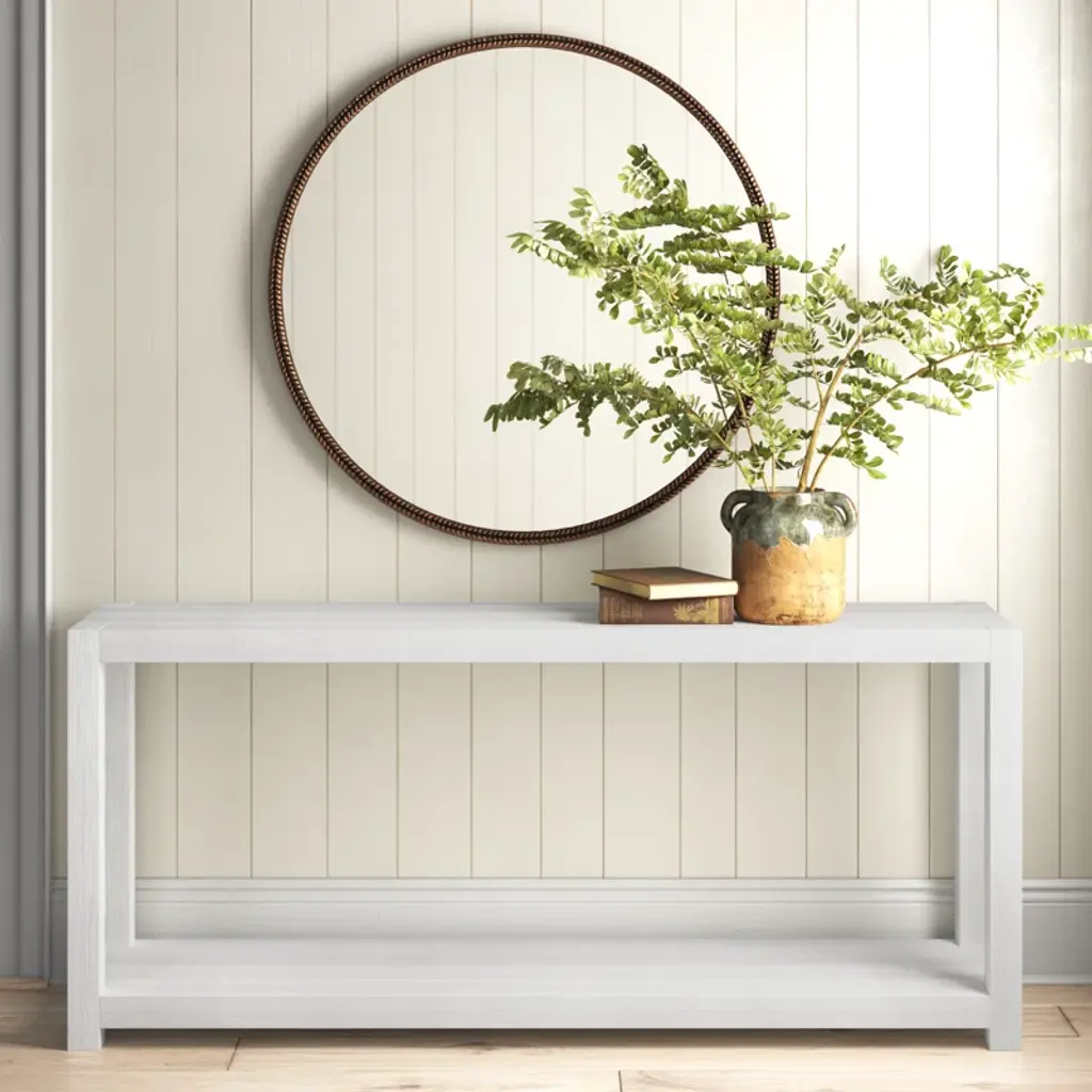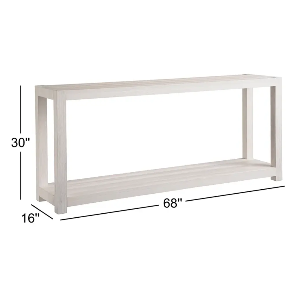 The console works in a variety of serene aesthetics with its extra-long silhouette, calming white finish and open-air design.