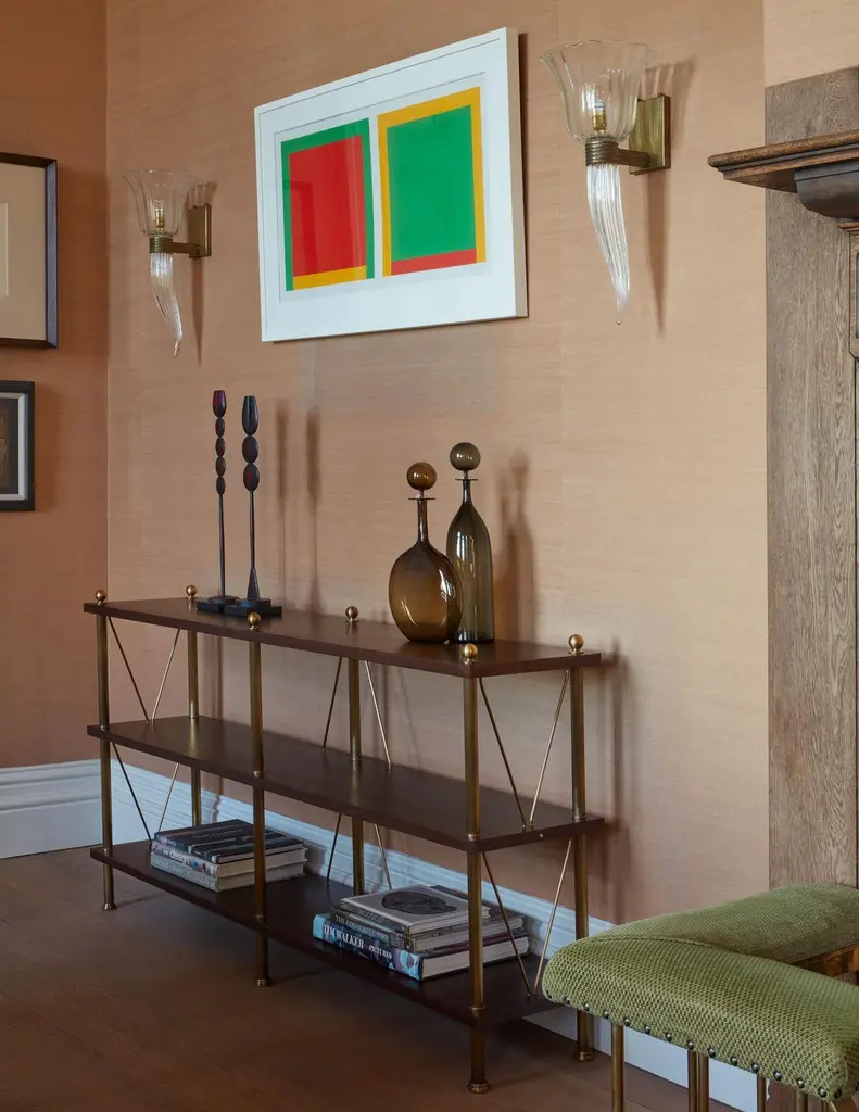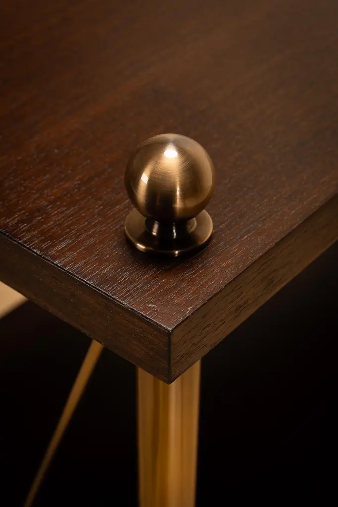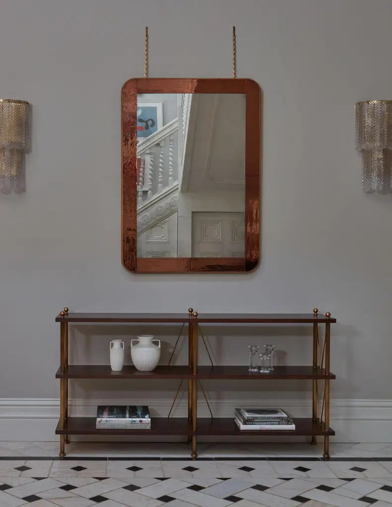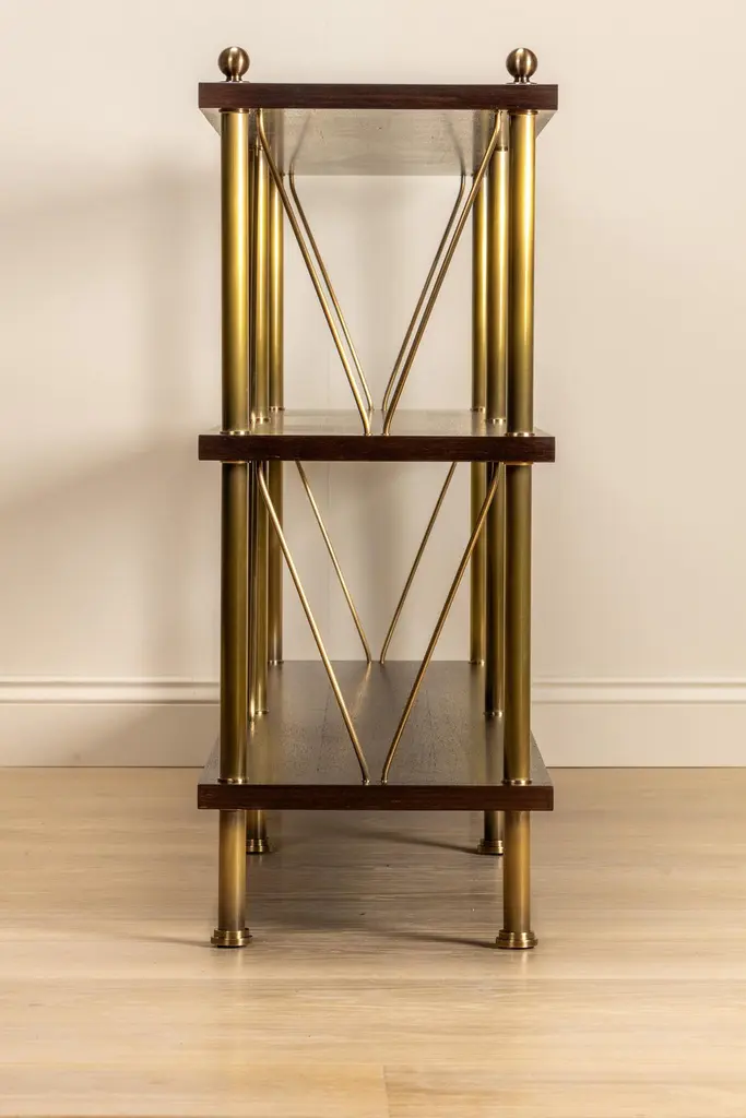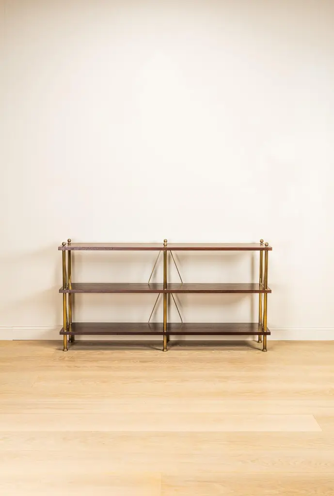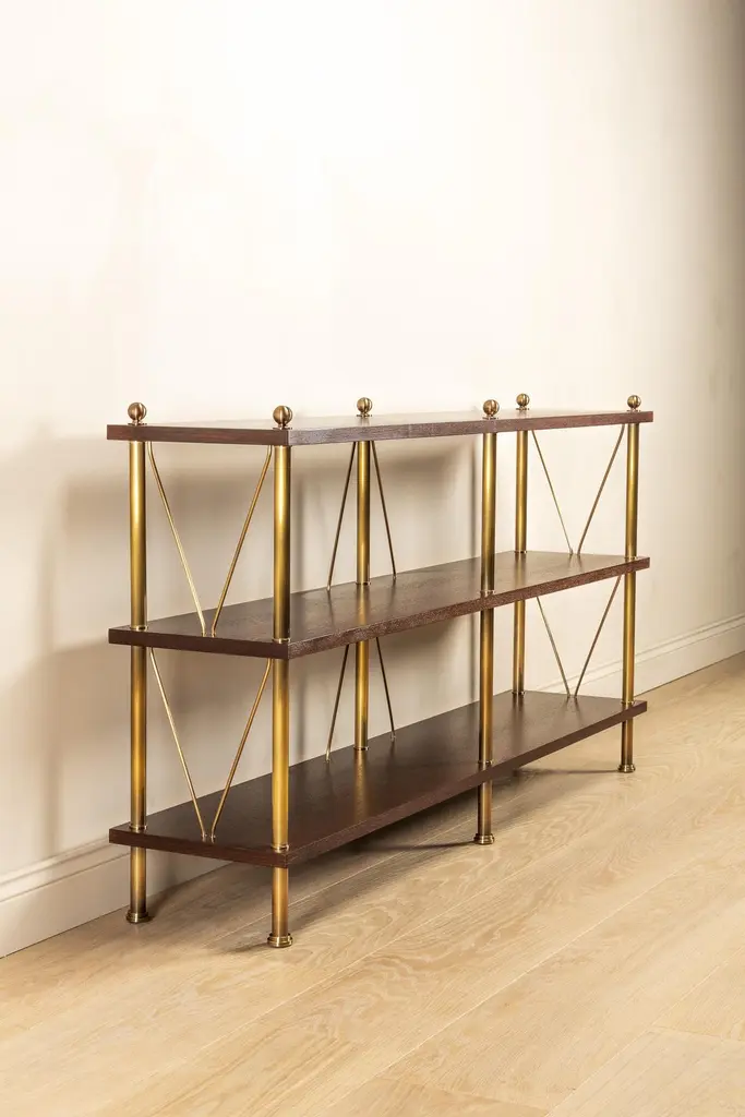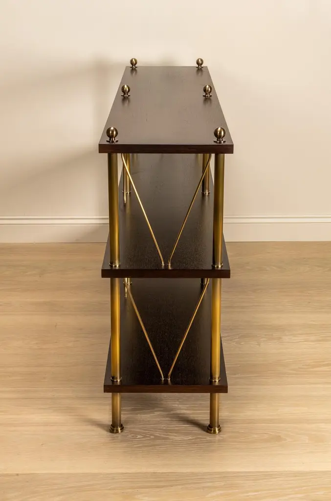 Our Vita range was created with the intention of being modular and easy to customise – to adapt from a large country house to a modern city dwelling. This console table is available with either stained walnut or leather wrapped shelves using customer's own leather. COL: 3 hides. Based on an average hide size of 50-55 sq/ft.