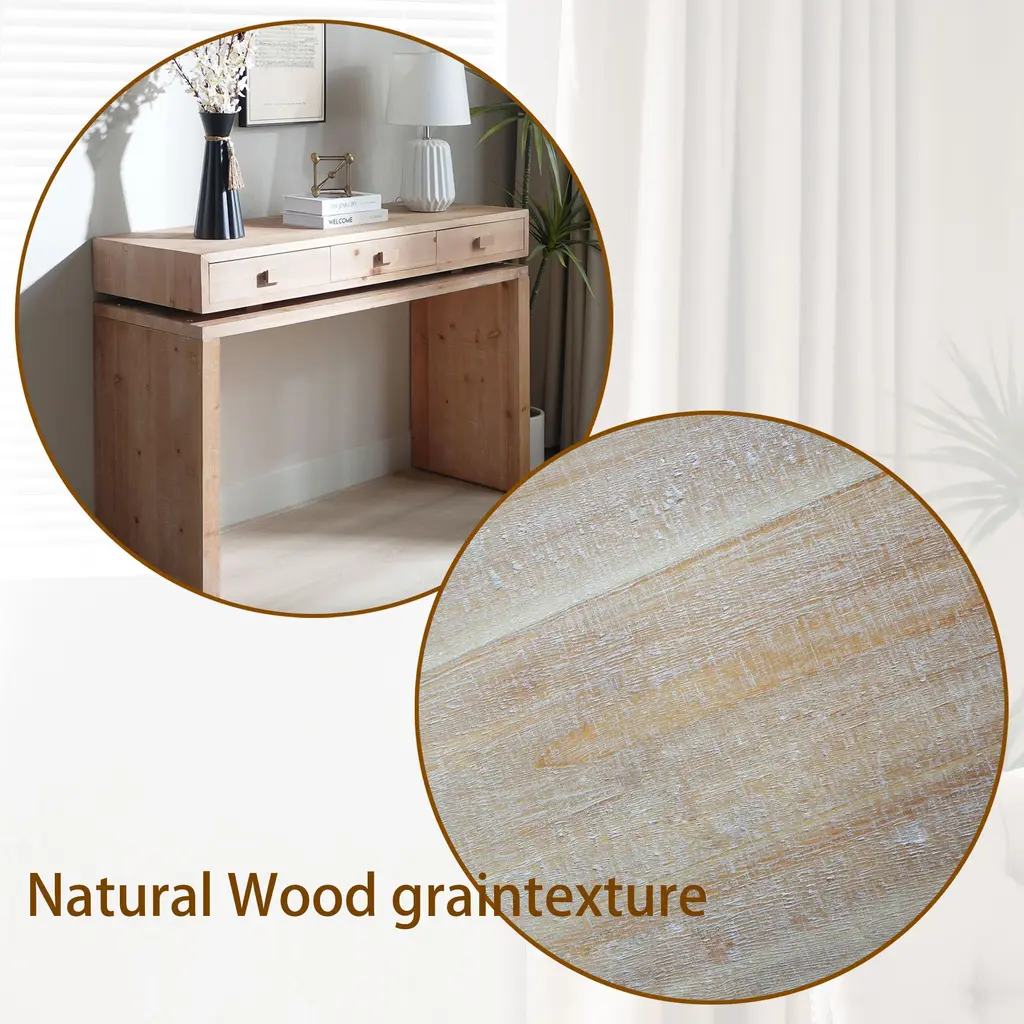 Rustic Natural & Light Brown Finish Wood Console Table With 3 Drawers