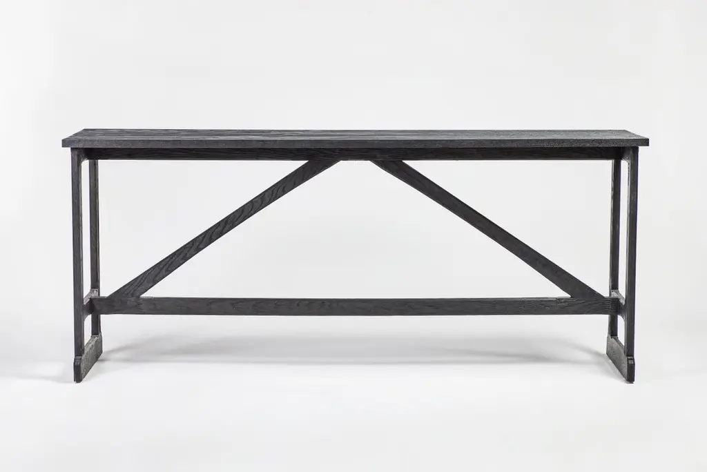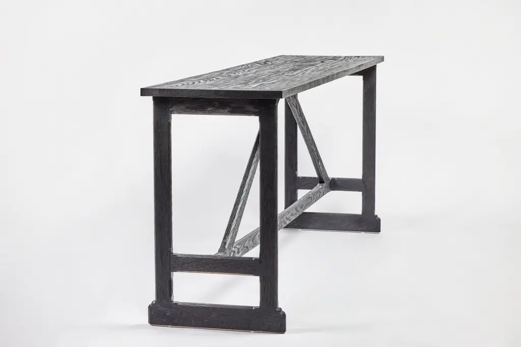 Rustic Style West Trestle Console, Large In Ebony On Oak By Martin And Brockett