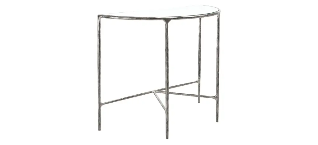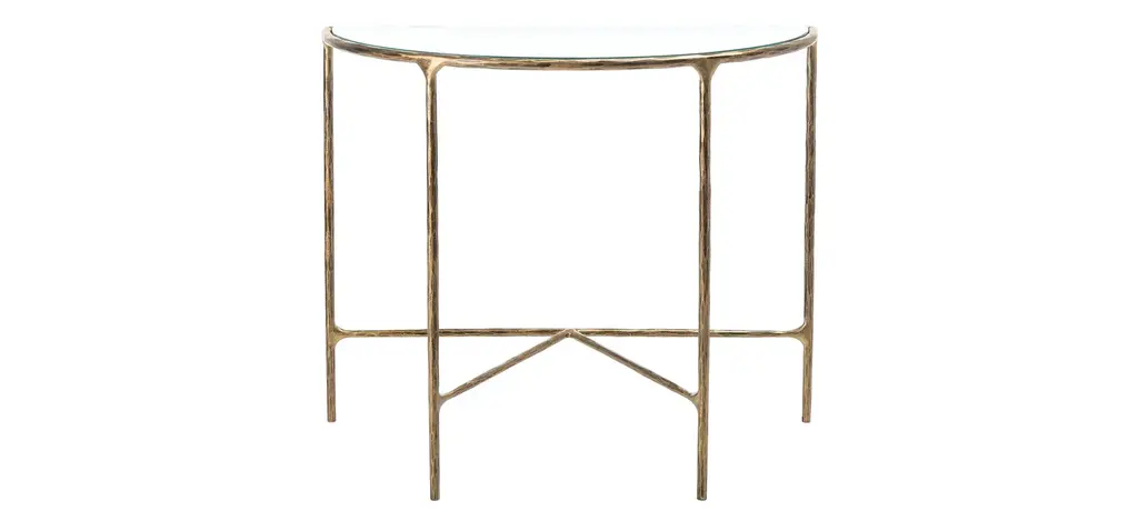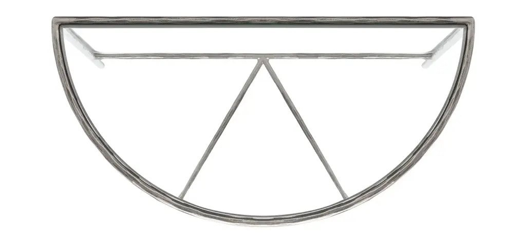 Your decor craves a touch of couturier decadence, and this Sadie forged metal console table has an alluring appeal that simply cannot be denied. Sadie awakens any interior with the aristocratic airy glamour it emanates from its open Demilune frame and sleek glass top, with a crossed stretcher completing the elegant look.