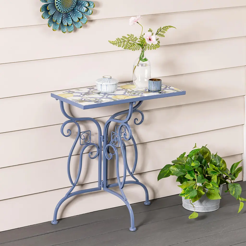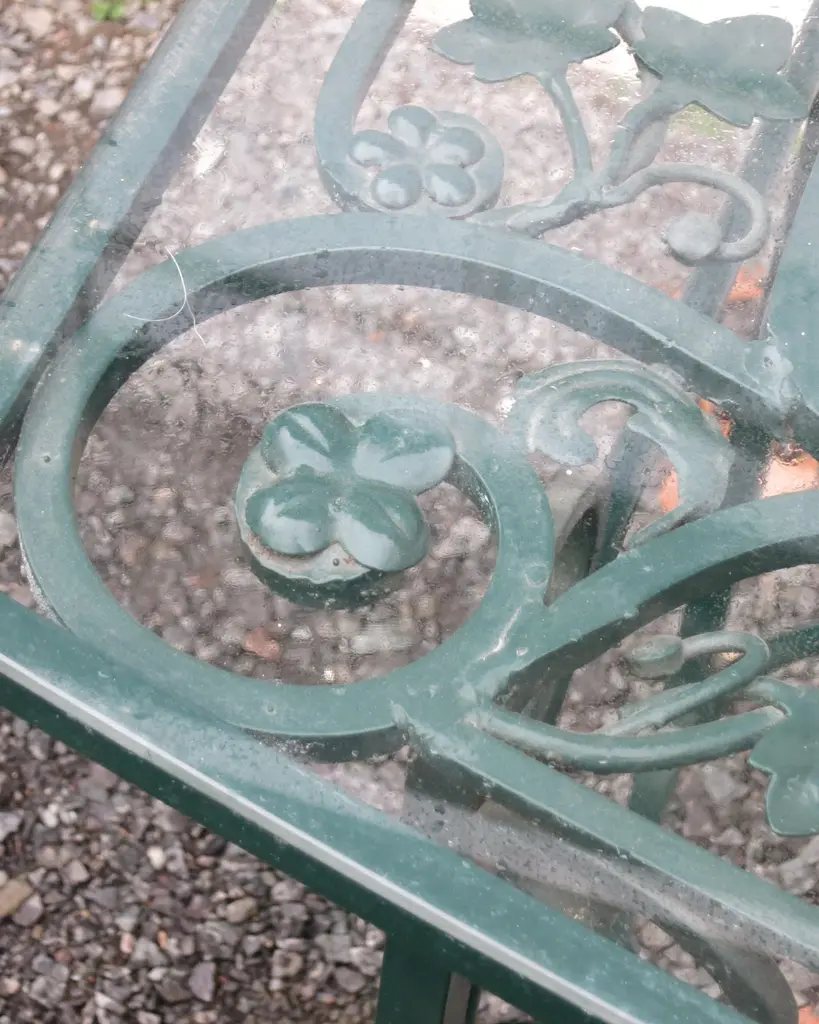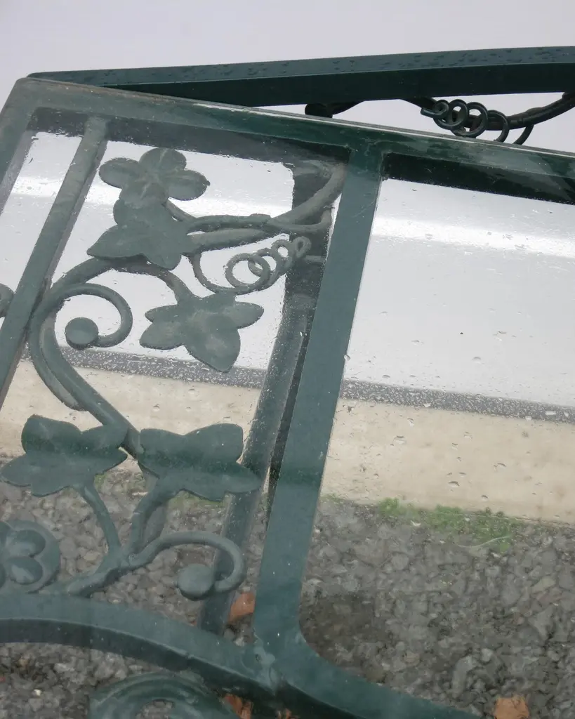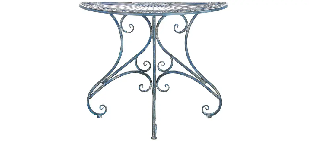 Salterini Park Avenue Console in dark green. Heavy well made piece. The console is 66" wide x 22.5" deep x 36" high. The glass top is 32.5" high. Good condition with some paint loss and normal wear. Glass has normal wear.