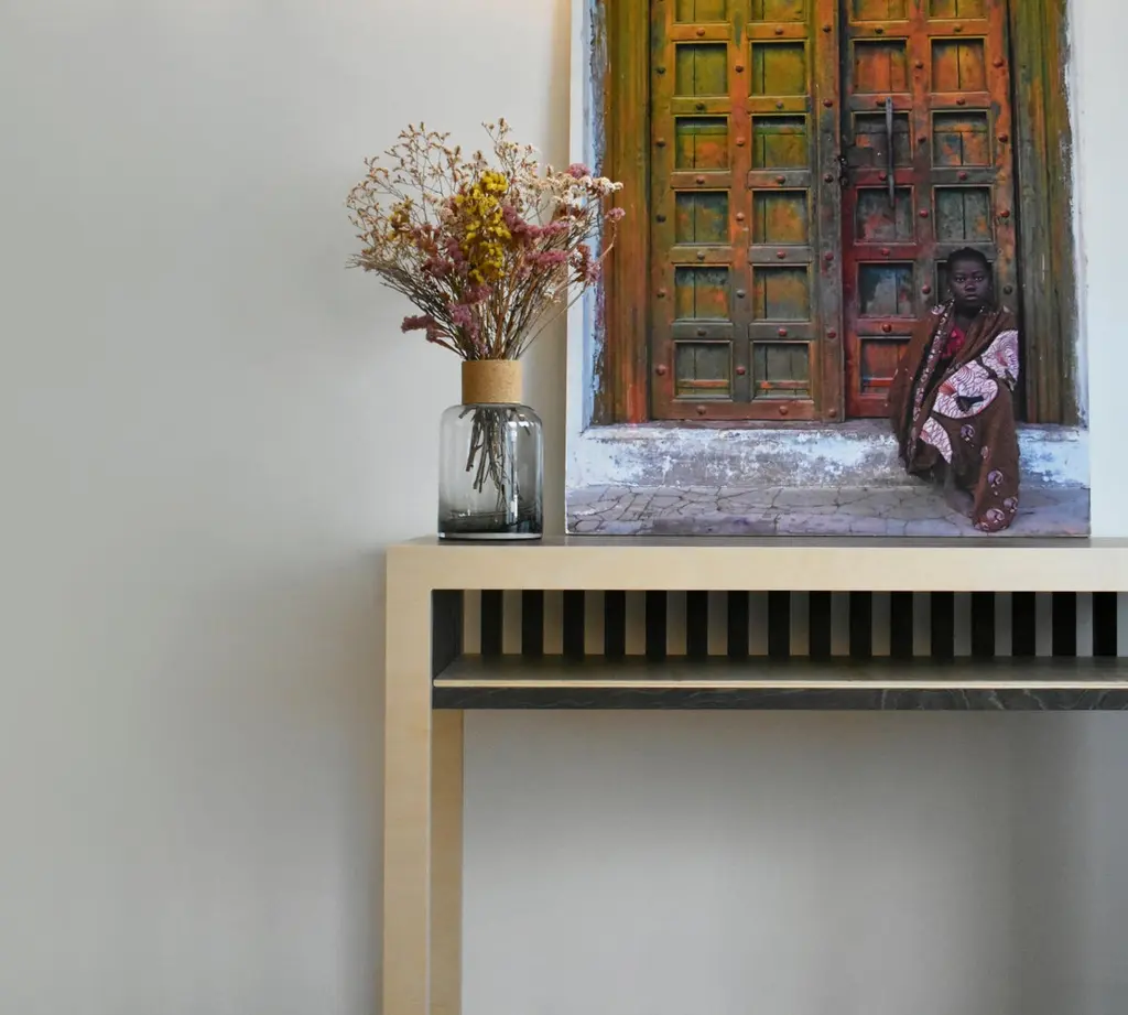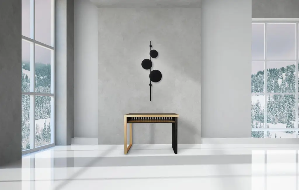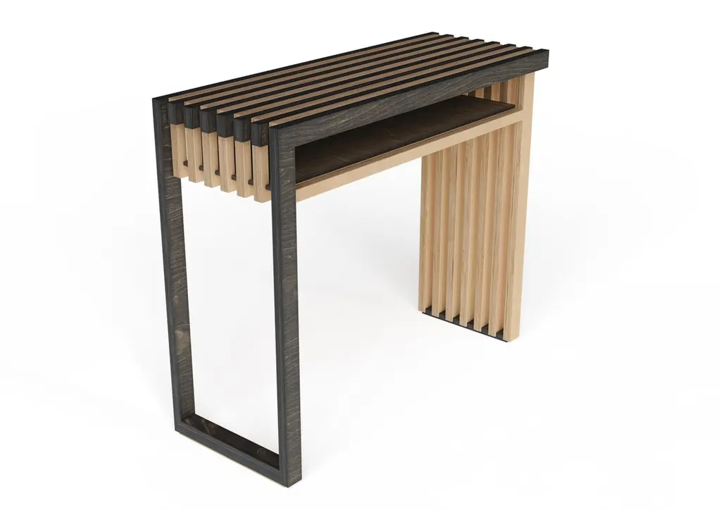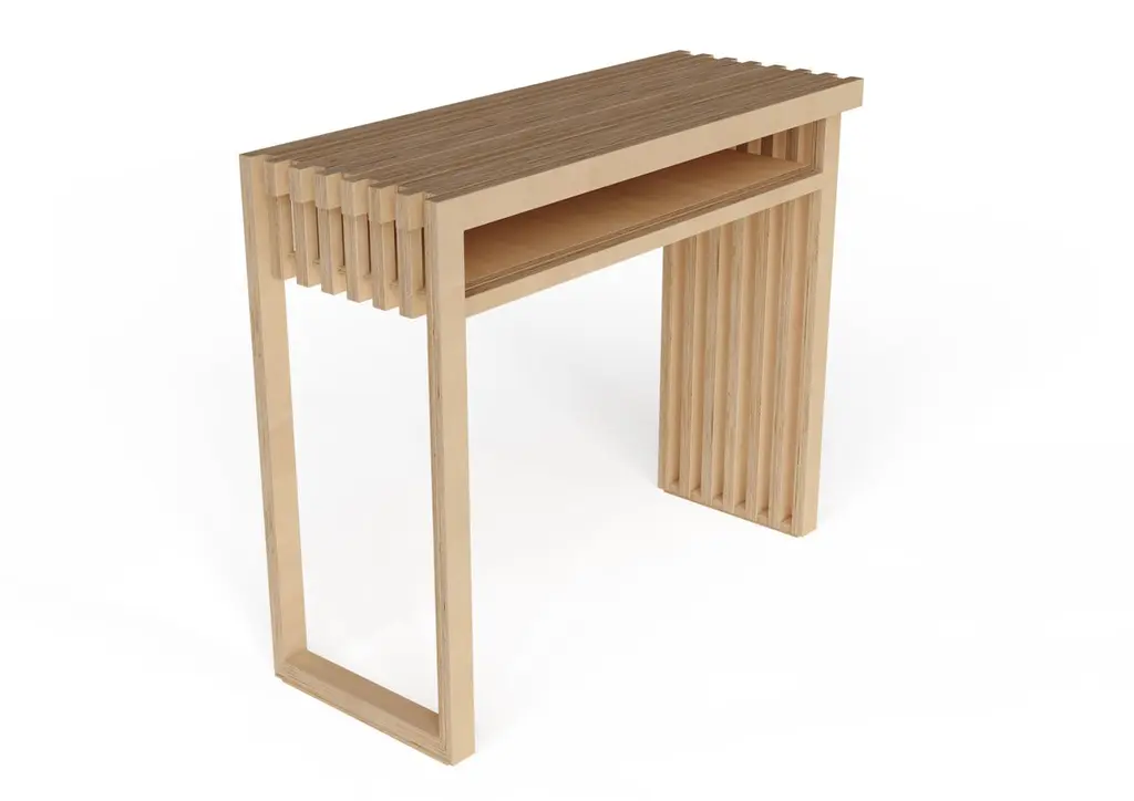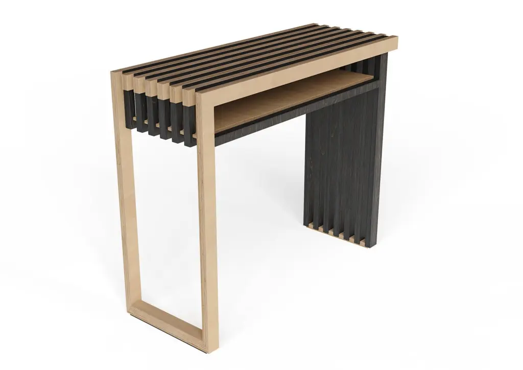 Imagine coming home from the rugged Nordic climate, to an intimate space to hibernate and refresh the soul. This console was designed elegantly with minimalistic lines, where function and form are in harmony and contrasting wood colors add a vibrant balance to the piece. It´s unique asymmetric legs bring a twist to the design enhancing its exclusive and creative mindeset.This console is a great feature piece for your home entrance. This console is made of sustainable birch plywood using CNC cut with innovating waste efficiency technology. We are using the highest quality woods with natural non-toxic glues and paint. This piece is assembled and finished by professional craftsmen.You can choose between two different color sets.We offer free shipping to Europe and will find you cheaper shipping for the rest of the world.