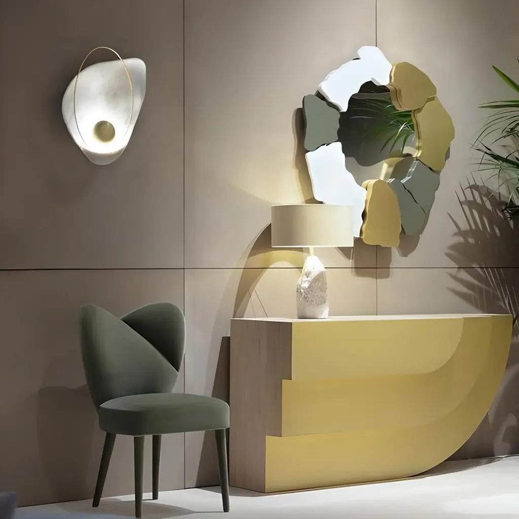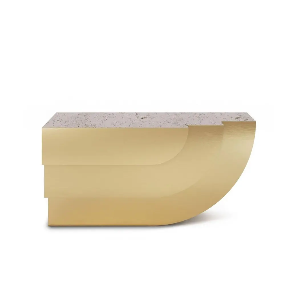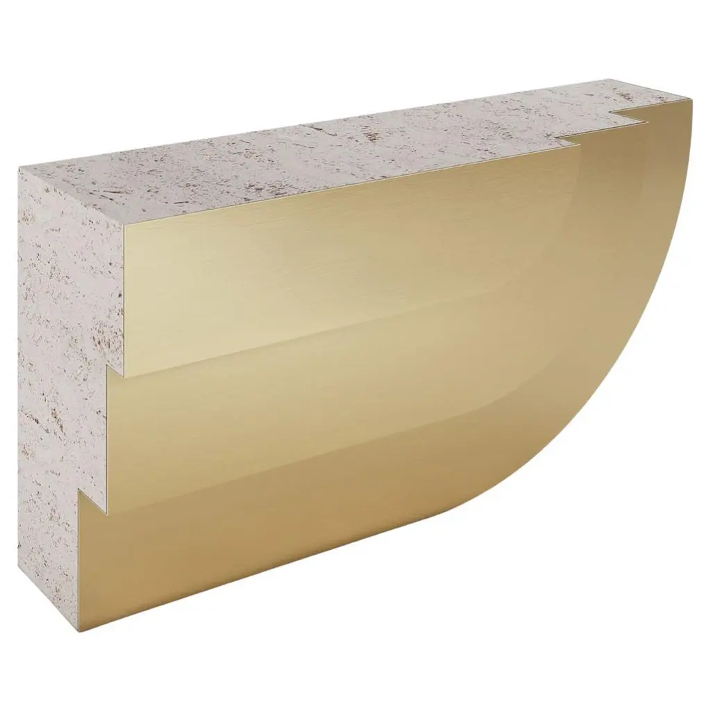 Sculptural Console Customizable In Brushed Brass Layers & Travertive
