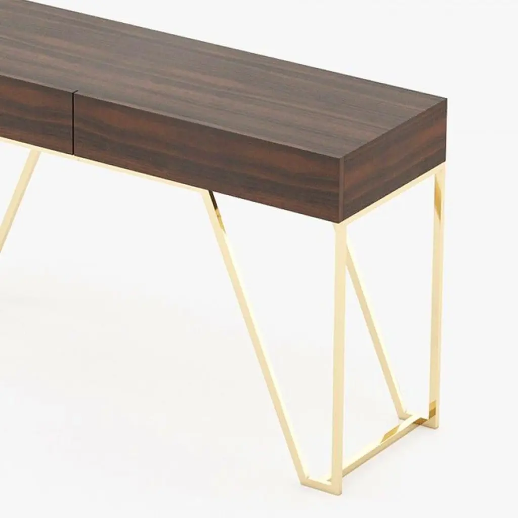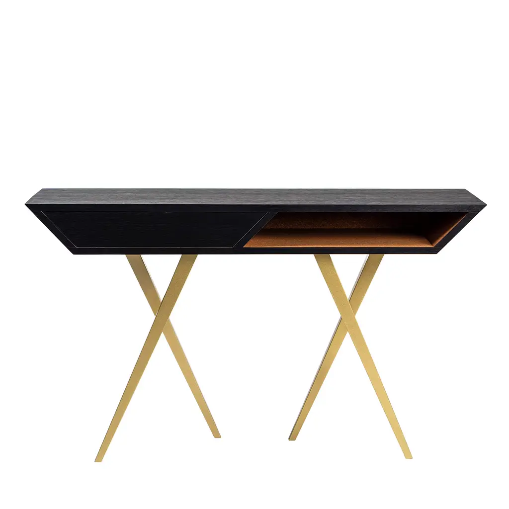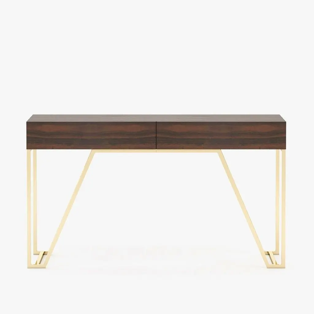 Console Table Seattle with structure in smocked eucalyptus veneeredwood in matte finish, with polished stainless steel base in gold finish.Also available in ebony matte finish, or grey oak matte finish,or natural oak finish, or rosewood matte finish, or in walnutmatte finish, on request.