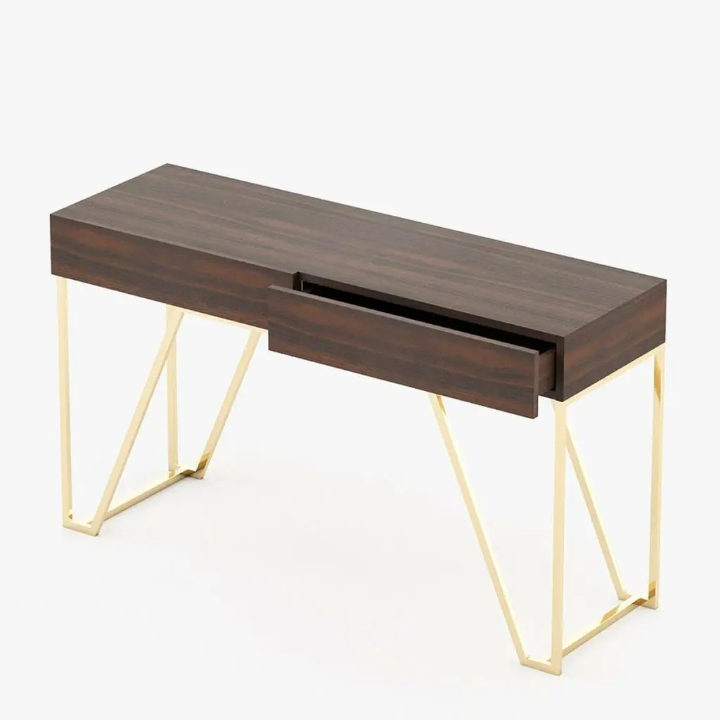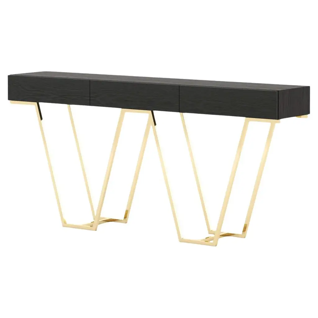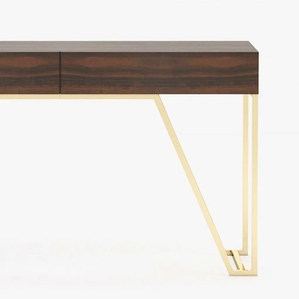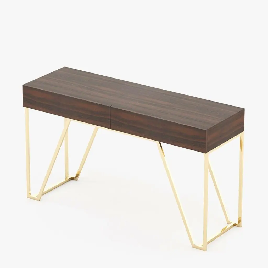 Console Table Seattle with structure in smocked eucalyptus veneeredwood in matte finish, with polished stainless steel base in gold finish.Also available in ebony matte finish, or grey oak matte finish,or natural oak finish, or rosewood matte finish, or in walnutmatte finish, on request.