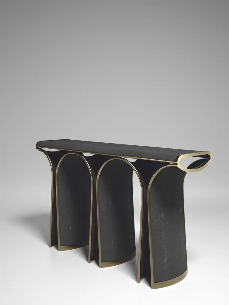 Shagreen Console With Bronze-Patina Brass Details By R&y Augousti