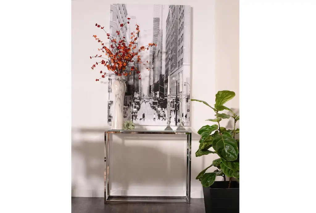 Shane 36" Glass Top + Silvery Base Entryway Narrow Console Table