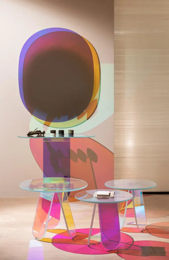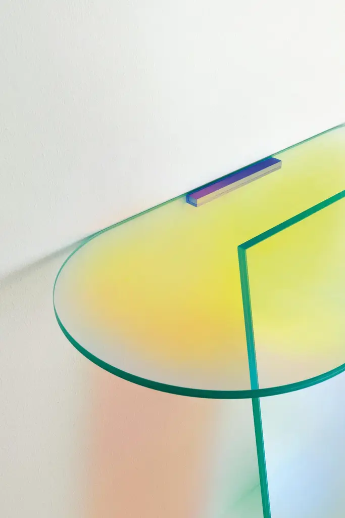 Shimmer console table is shown here in the laminated and glued glass. The collection is available in high tables, low tables and consoles in laminated and glued glass, characterized by a special iridescent multichromatic finish; the nuance varies according to the angle of the light source and the vantage point. Reflected objects with a magical and ethereal appearance emerge. The high tables bases can be dismantled and are fixed to the top by means of metal plates, concealed by a circular decorated covering.Patricia Urquiola was born in Oviedo (Spain) in 1961. Lives and works in Milan. She attended the School of Architecture of Madrid Polytechnic and Milan Polytechnic, where she graduated in 1989 with Achille Castiglioni. From 1990-1992 she was assistant lecturer to both Achille Castiglioni and Eugenio Bettinelli in Milan and Paris. From 1990-1996 she was responsible for the new product development office of DePadova, working with Vico Magistretti. In 1996 she became head of Lissoni Associati’s design group. In 2001 she opens her own studio working on product design, architecture, installations. Amongst her last projects of architecture: Mandarin Oriental Hotel in Barcelona and W Retreat&Spa a Vieques (Porto Rico); a villa in Udine; scenography of the opera “L’incoronazione di Poppea” by Monteverdi; showroom and installations for Hermès, Gianvito Rossi, Flos, Moroso, H&M and the general concept of Pitti Immagine Firenze. She designs for the most important Italian and international firms as Agape, Alessi, Andreu World, Artelano, Axor, B&B Italia, Bart Design, Bisazza, BMW, Bosa, Budri, Chevalier Edition, Il Coccio, De Padova, De Vecchi, Driade, Emu, Fasem, Salvatore Ferragamo, Flos, Foscarini, Gallotti & Radice, Gandia Blasco, Glas Italia, Kartell, Kettal, Kvadrat, Mixing Media, Maurice Lacroix, Liv’it, Peter Mabeo, MDF Italia, Molteni, Moroso, Mutina, Olivari, Panasonic, Paola Lenti, Rosenthal, Champagne Ruinart, San Lorenzo, Tronconi, Viccarbe. Consulting for Honda and LG. Some of her products are exposed in the permanent collection of MoMA in New York and other international museums. She has won several international prices and awards. Amongst others the Medalla de Oro al Mérito en las Bellas Artes 2010 awarded by the Spanish Government (2011) and the A&W Magazine nomination as Designer of the Year 2012.Additional information:- Dimensions: SHI07, W 100, D 45, H 84.5- Finishes: Laminated and glued glass.Please note that the list price excludes VAT. An additional VAT charge may apply.