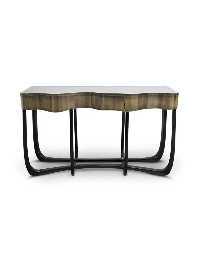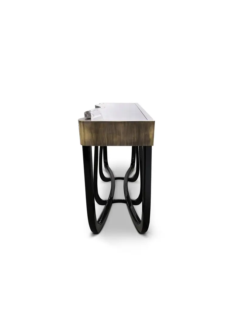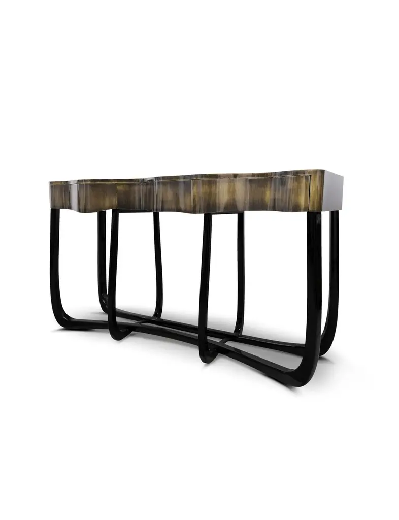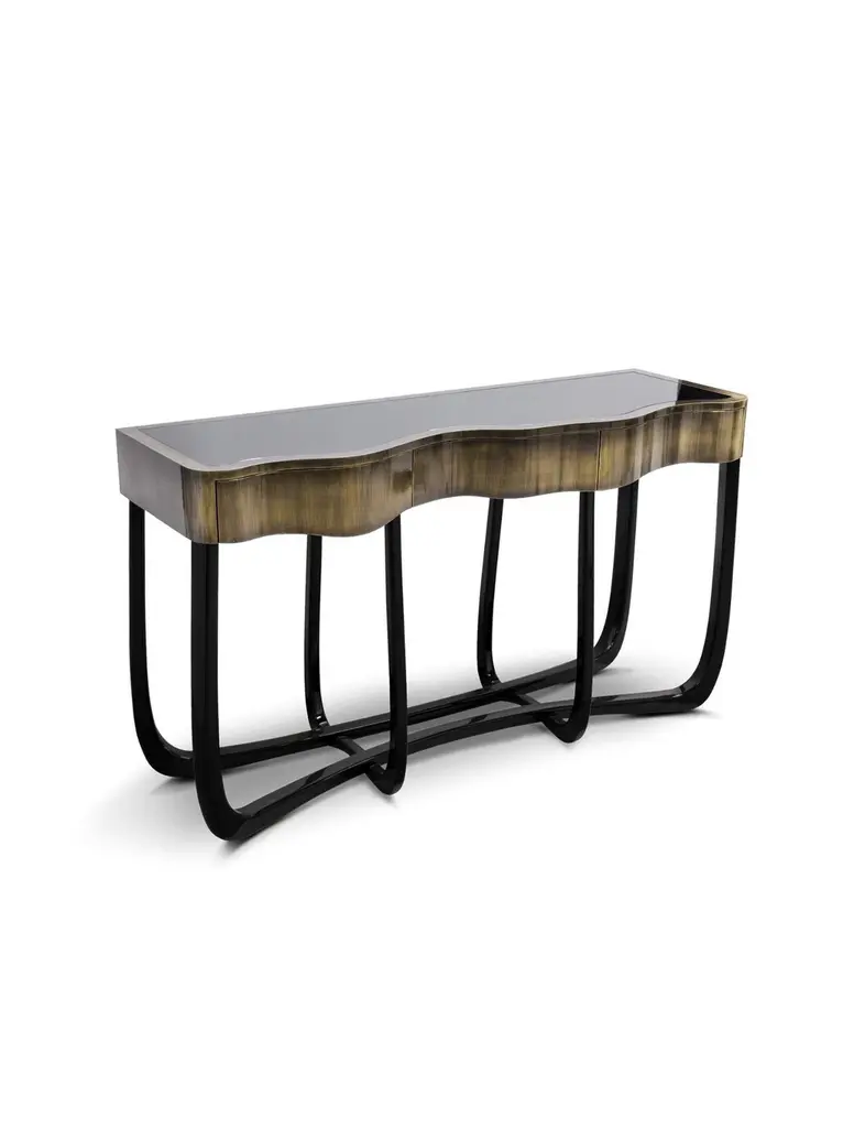 Sinuous Patina Console - Hand-Crafted Brass & Veneer - Boca Do Lobo