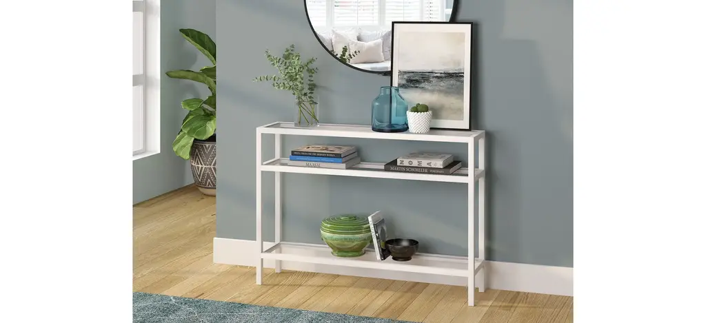Create a warm welcome with the clean lines of this Sivil 42" console table. Whether tucked behind the sofa or a display for a menagerie of trinkets, this console table is the perfect backdrop to create a magazine-ready display.