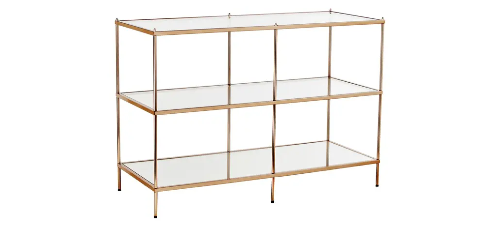 Evoke the seductive style of the seventies with the decadent Callum Console Table. Its brushed brass frame with beveled rims surrounds the tabletop of smoke glass and the bottom shelf of mirror glass. Whether you are going for a retro or contemporary look, this stylish console table will be a perfect choice.Download Assembly Sheet