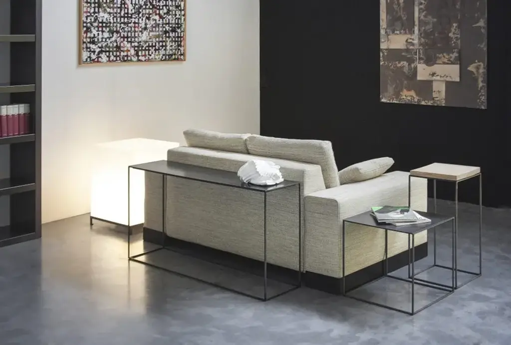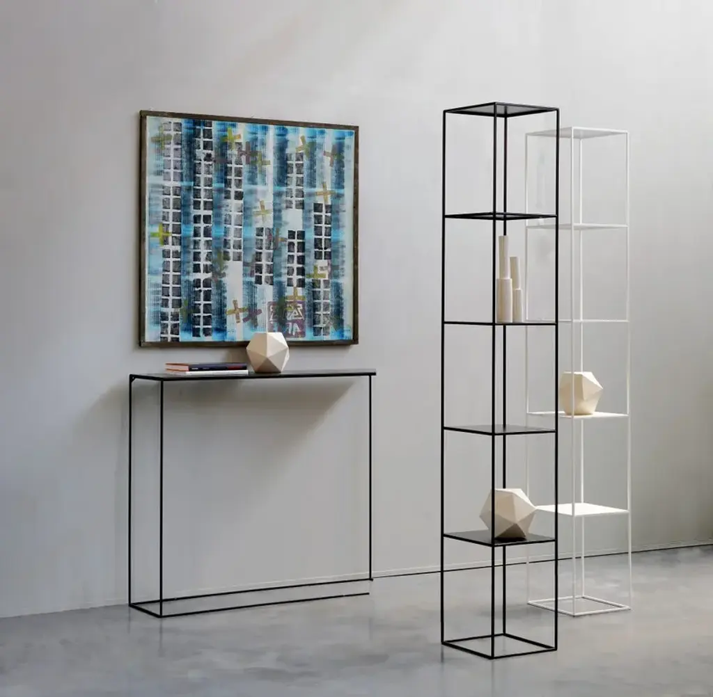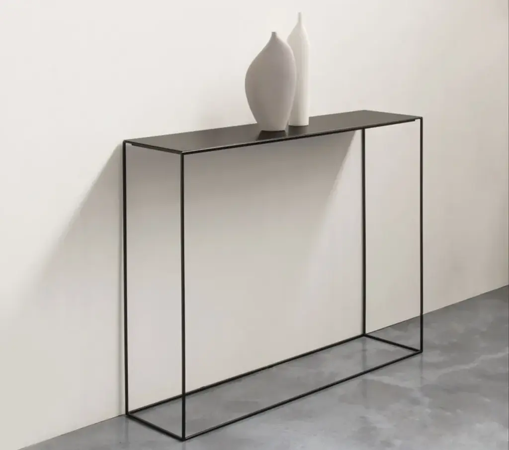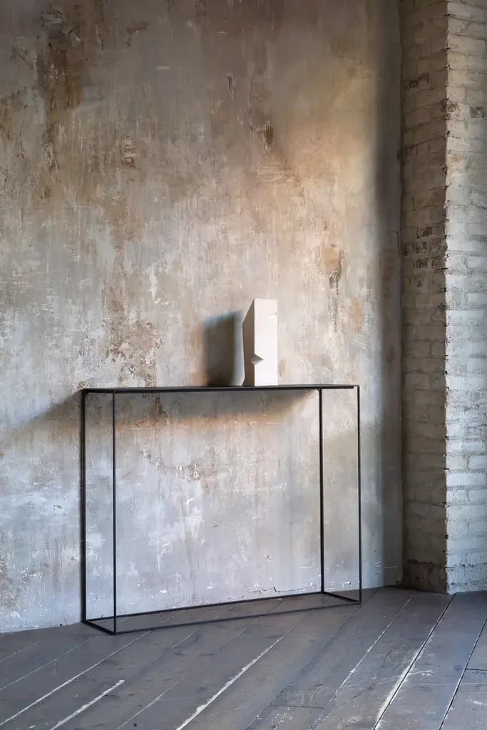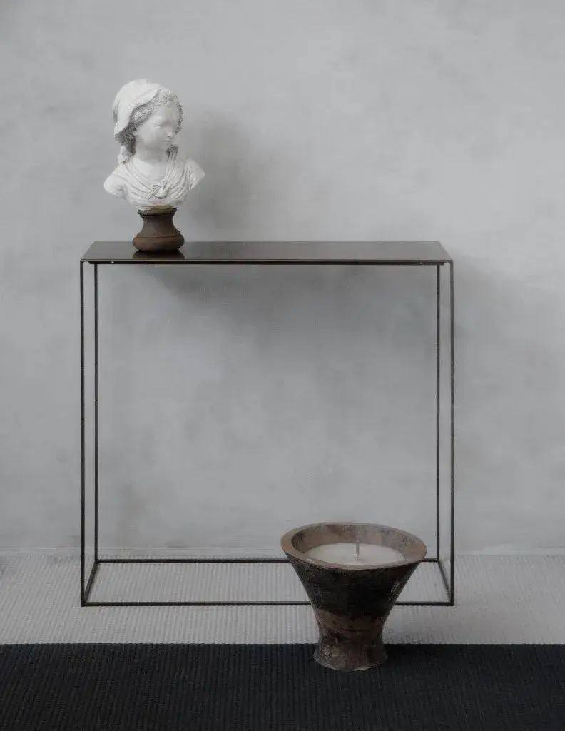 Slim Irony is a metal console table.Frame: Copper black sand-touch / Embossed whiteTop: Copper black sand-touch / Embossed white / Black phosphatized sheet steel