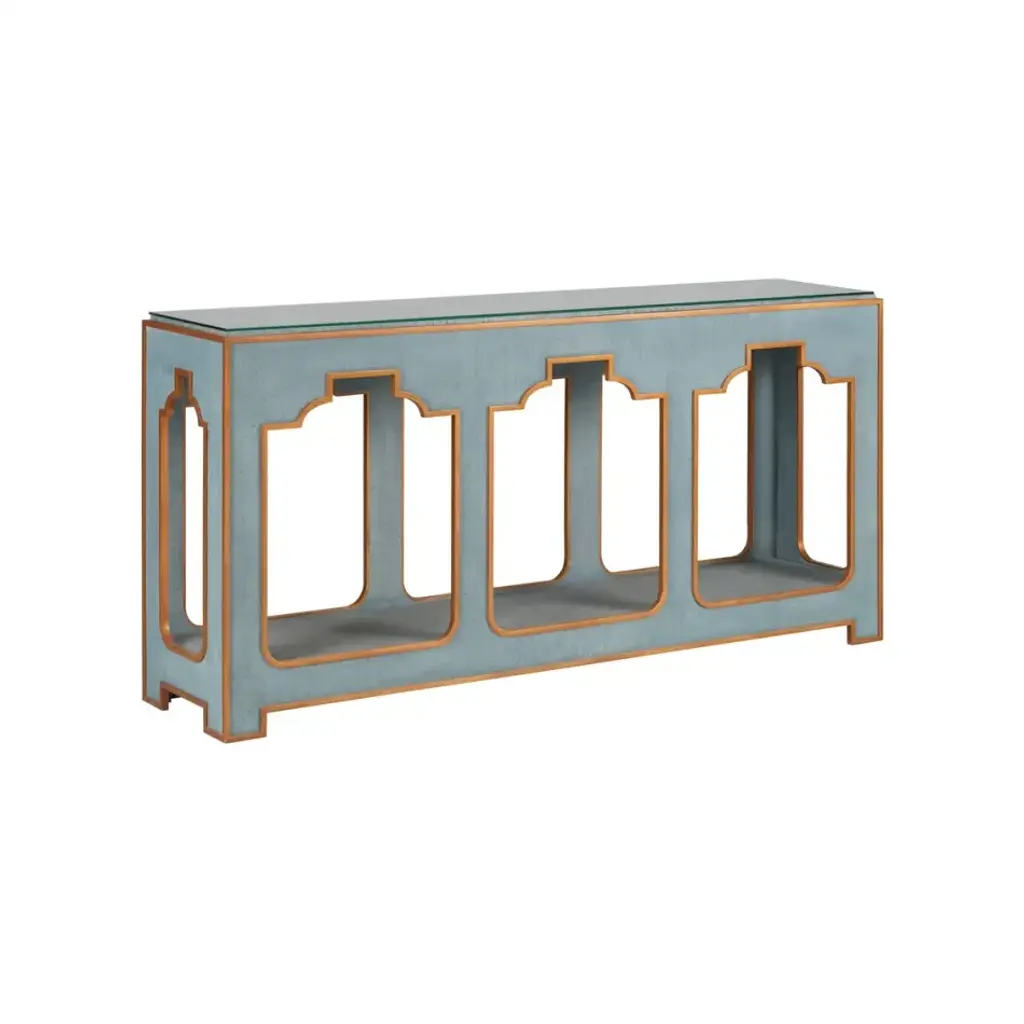 A modern take on classic rattan styling, this console table features a rattan frame with rawhide bindings and a wooden table top. The frame is reinforced with steel for strength and stability. The chic and refined look of the console table makes it a great choice for modern styled home decor. Each console table is hand-finished in the USA. Please allow time for delivery. To properly maintain your furniture clean it with a non-silicone based furniture polish monthly. Spray the furniture polish onto a clean cotton cloth or rag. Do not spray the furniture polish directly onto the furniture. Wipe the furniture polish with the grain.