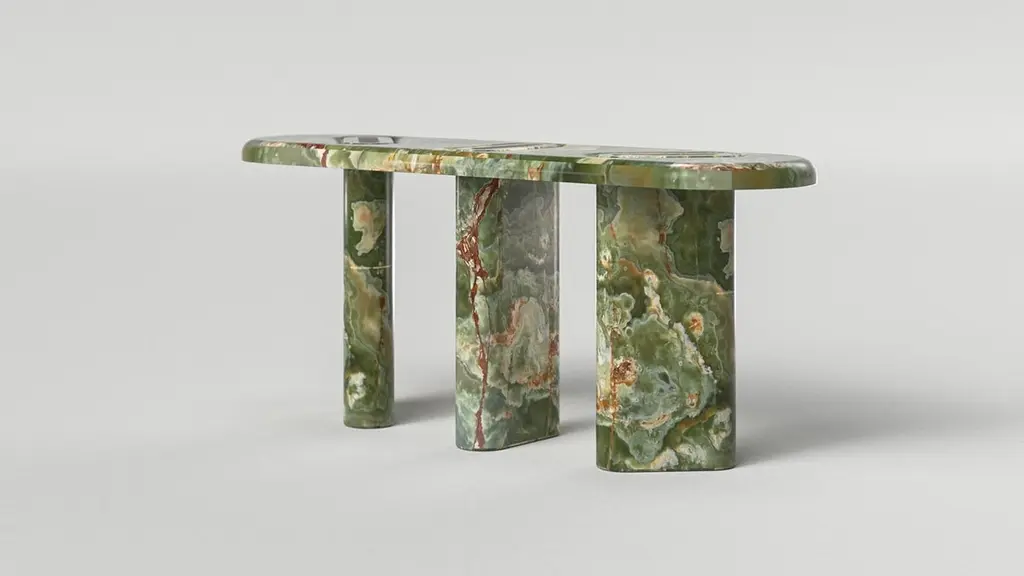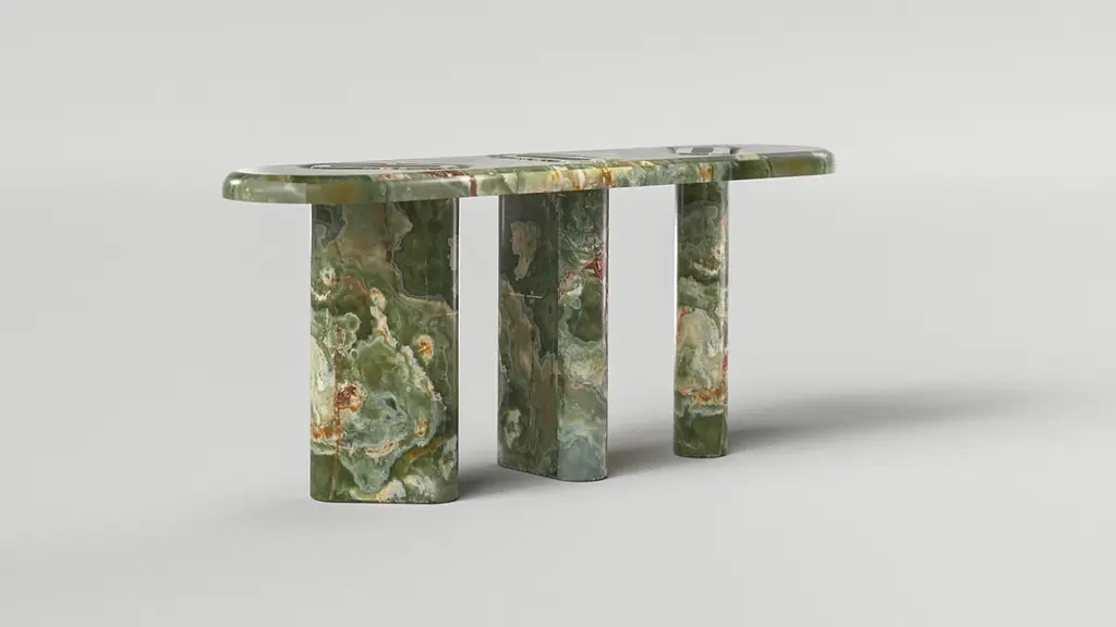 Solid Green Onyx & Brass Console By Arthur Vallin