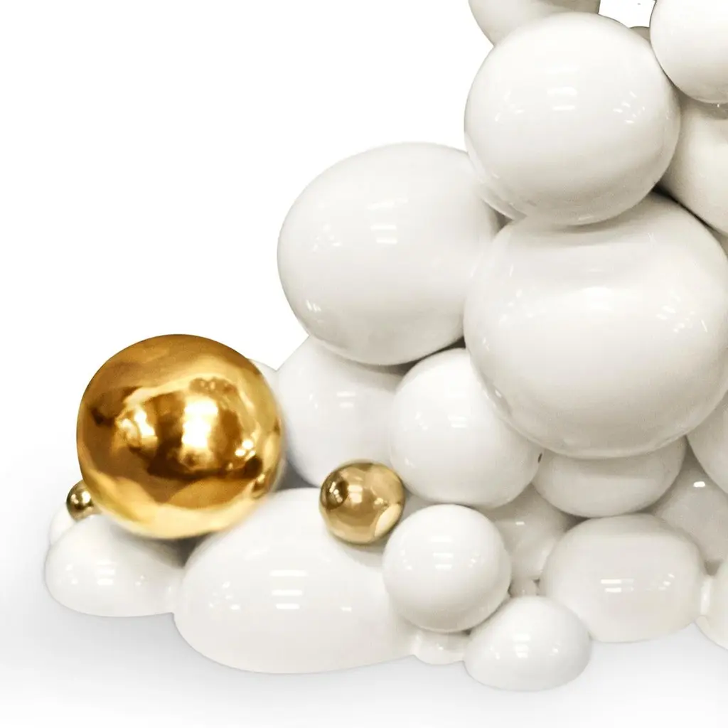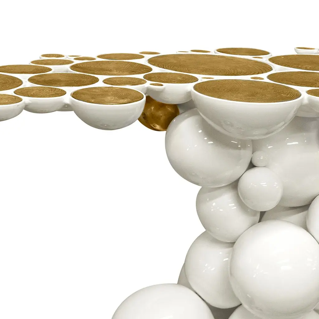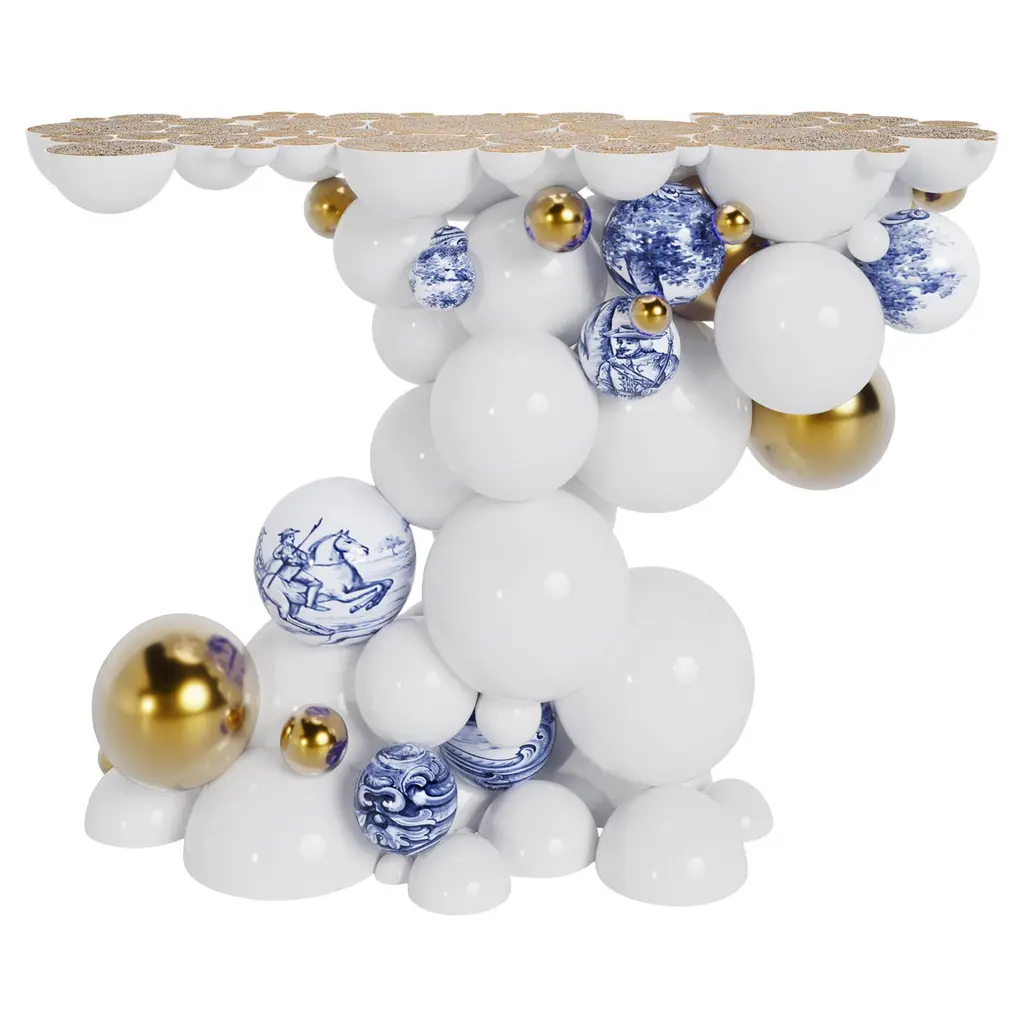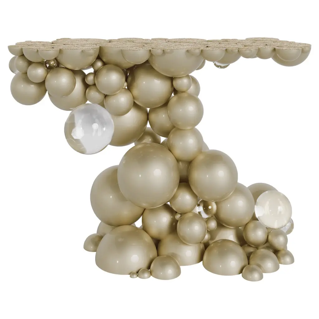 Console table spheres composed by metallic spheresand semi spheres joined together. Aluminium white varnishand gold finish.Also available in Black finish.