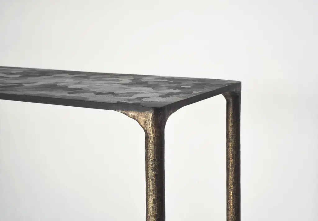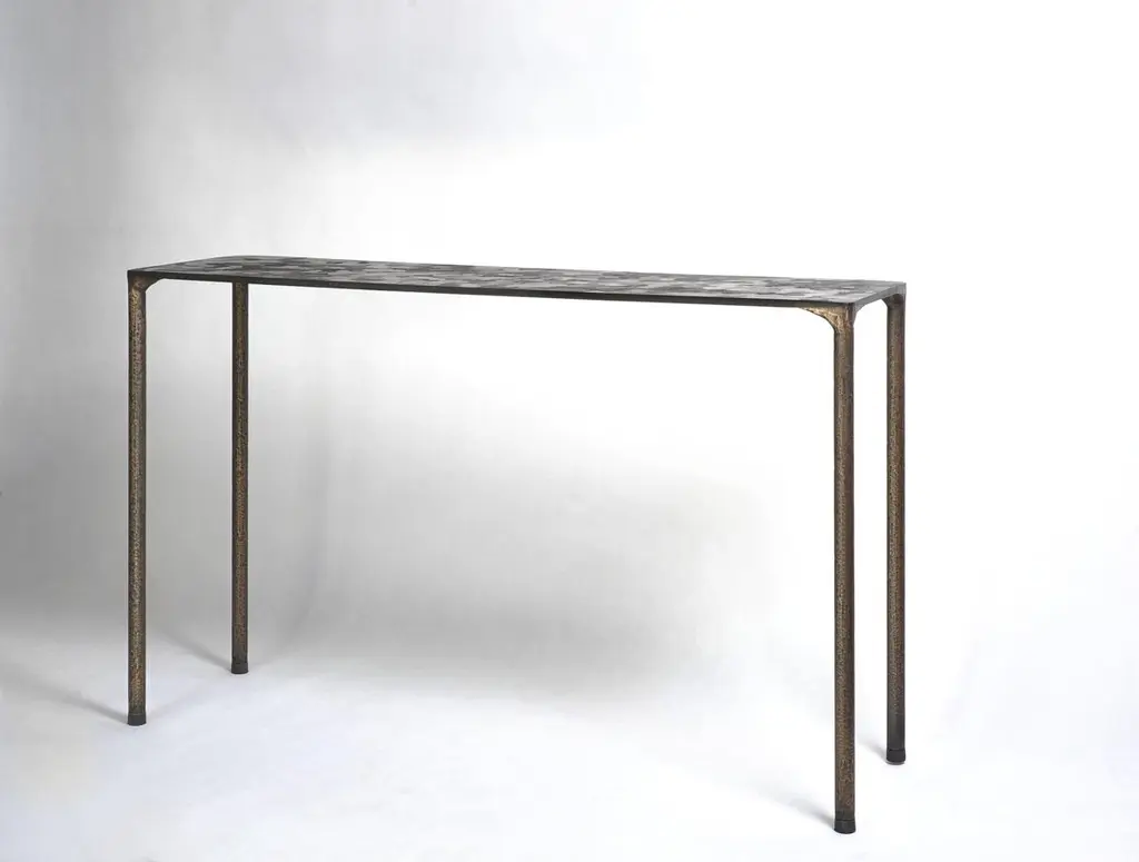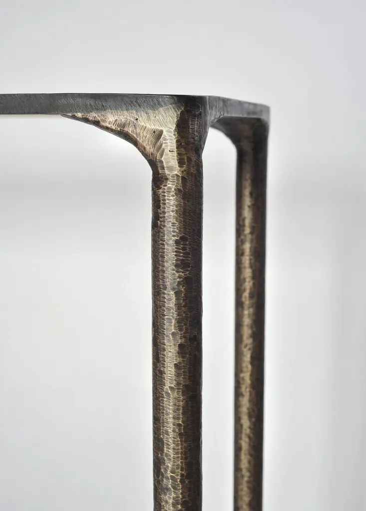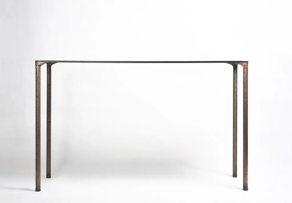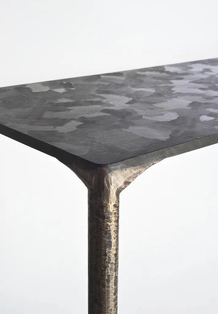 Steel console by Lukasz FriedrichDimensions: 127 x 35 x H 78 cmMaterials: SteelDimensions are fully customizable.Lukasz Friedrich (born 1980), lives and works in Warsaw. He is a self-taughtdesigner and craftsman. Lukasz grew up in and around gloomy and dusty metal workshop of his grandfather and father. In this family run manufacture he first met and got acquainted with accidental, not intended beauty of purely technical environment. Fascinating lathe machines and heavy pneumatic hammers not to mention poetic and almost ancient framesaw were his first objects of fascination. Once playground this old, no longer existing workshop later became his source of inspiration.Academic studies in social science with focus on cultural anthropology gave him professional insight into artifacts of human creation. During extensive fieldwork he once again fell in love with things small and omitted but visually very appealing. After getting his MA in Cultural Anthropology he entered family workshop as a co-worker. During years spent at working table manufacturing commissioned pieces, Lukasz was developing his own craft. Skills he gained allow him to hand make mostly every design he intends.He still gets his inspiration from technical surrounding. Very often possibilities and limitations given by materials become questions seeking answer. He likes his items raw but undoubtedly finished. Elegance and sophistication may be enclosed in the most simple shapes of often almost ordinary objects.