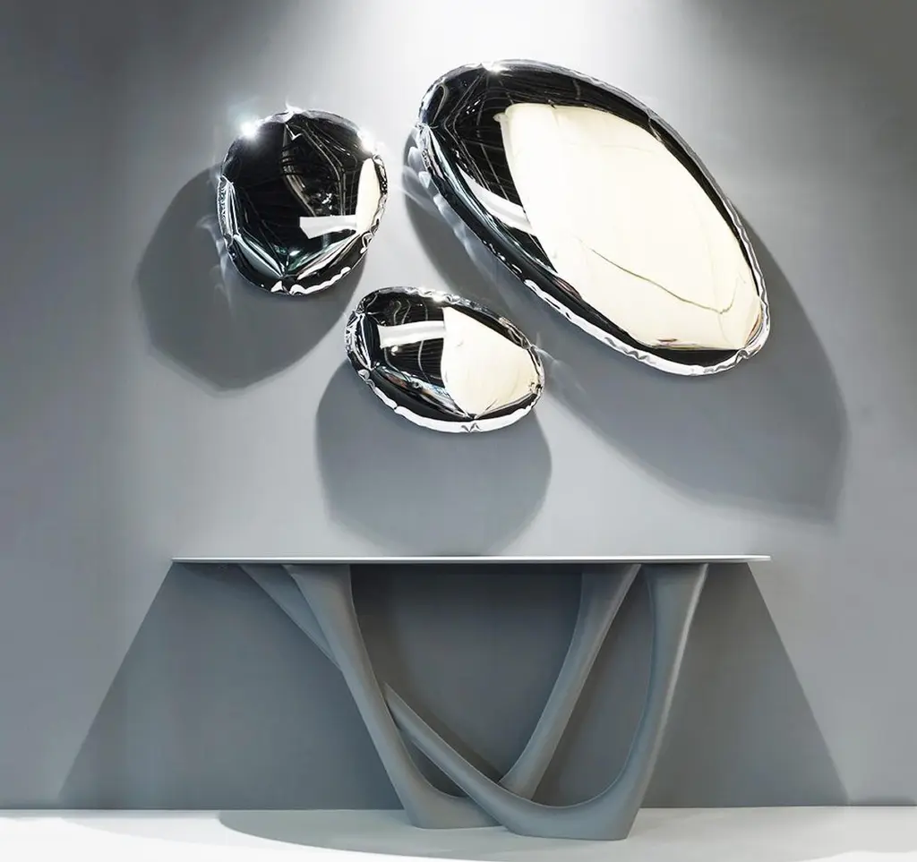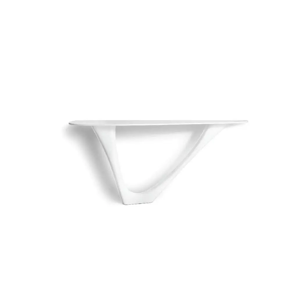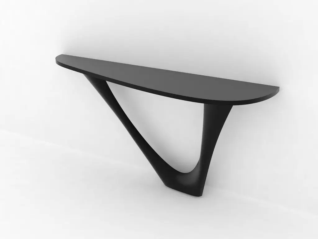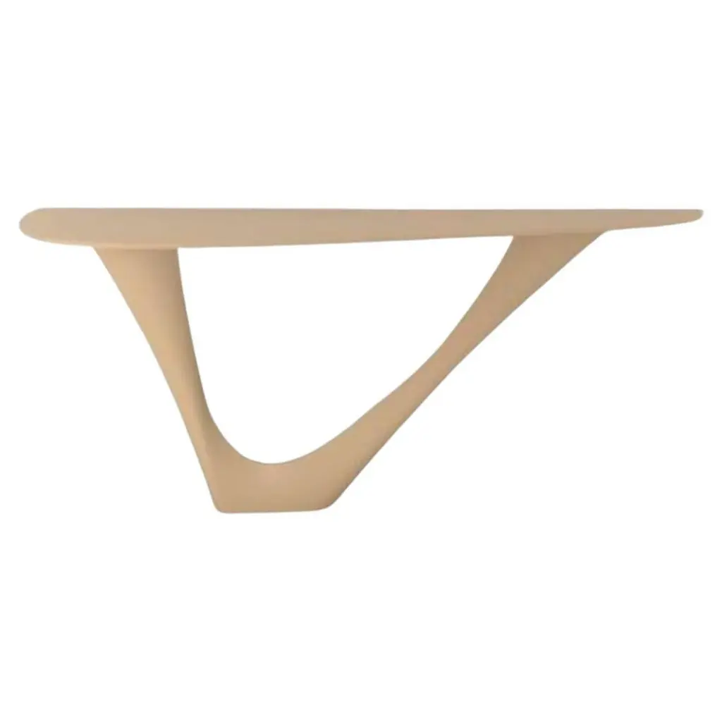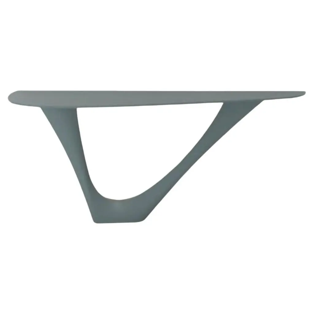 Steel G-Console Mono by ZietaDimensions: D 43 x W 159 x H 75 cm Material: Carbon Steel. Finish: Powder-Coated. Available colors: White, beige grey, moss grey, umbra grey, blue-grey, graphite, black-brown, brown, grey-beige, grey-blue, telegrey 2, window grey, stone grey, concrete grey, yellow-olive, olive green, reseda green, and pale green. Color as selected by the customer from the available Zieta color palette. Also available in Concrete, Stainless Steel, Stone, Leather, and DUO. G-Console is another bionic object in our collection. Created for smaller spaces, it gives another possibility in interior planning and at the same time preserves the unique shape of the original G-Table. Both objects were made for enthusiasts of bionic forms. Made with FiDU technology, it reminds of vines or tree roots. Nature symbolizes a constant changeability and harmony that comes out of it. A diverse structure refers to both natural forms and processes. G-Console comes in two versions – Mono and Duo.About Zieta: Zietas main goal is to deliver uniqueness and customization in design and construction while keeping the production, transport, and warehousing innovatively efficient.This is how they imagine the future world: Light, durable structures of customized applications produced on demand out of one-of-a-kind parts, yet efficiently.They use a computer-controlled production process. Customized pattern, customized form, customized function, one-of-a-kind product, and outstanding precision are what they deliver.You will find all of this philosophy reflected in the products. They research, they discover new possibilities, they play with forms and they deliver a beautiful, innovative, surprising outcome to people who love the design and who care about design development.They believe their work is a valuable contribution to the world of design not only by the unique beauty of the forms but most of all by opening ultra-innovative opportunities of forming and new paths for the world of the future.
