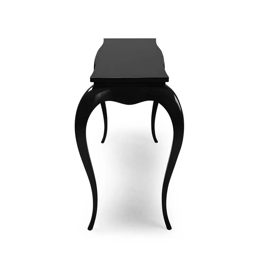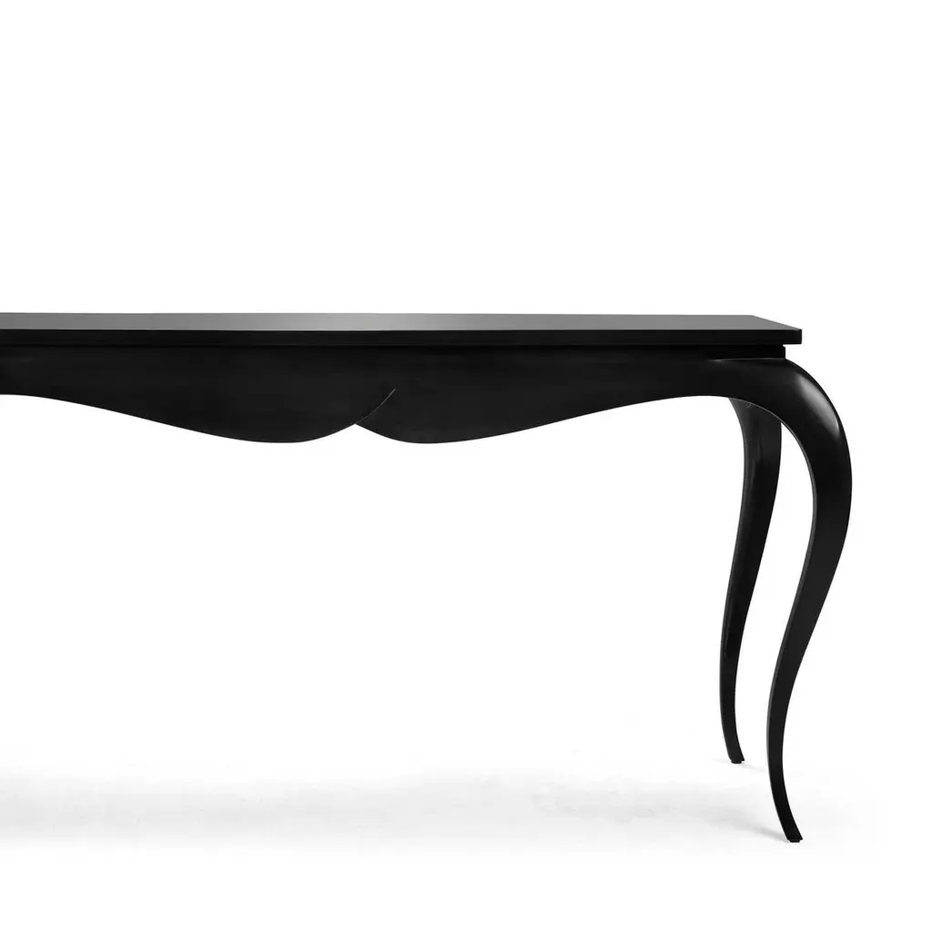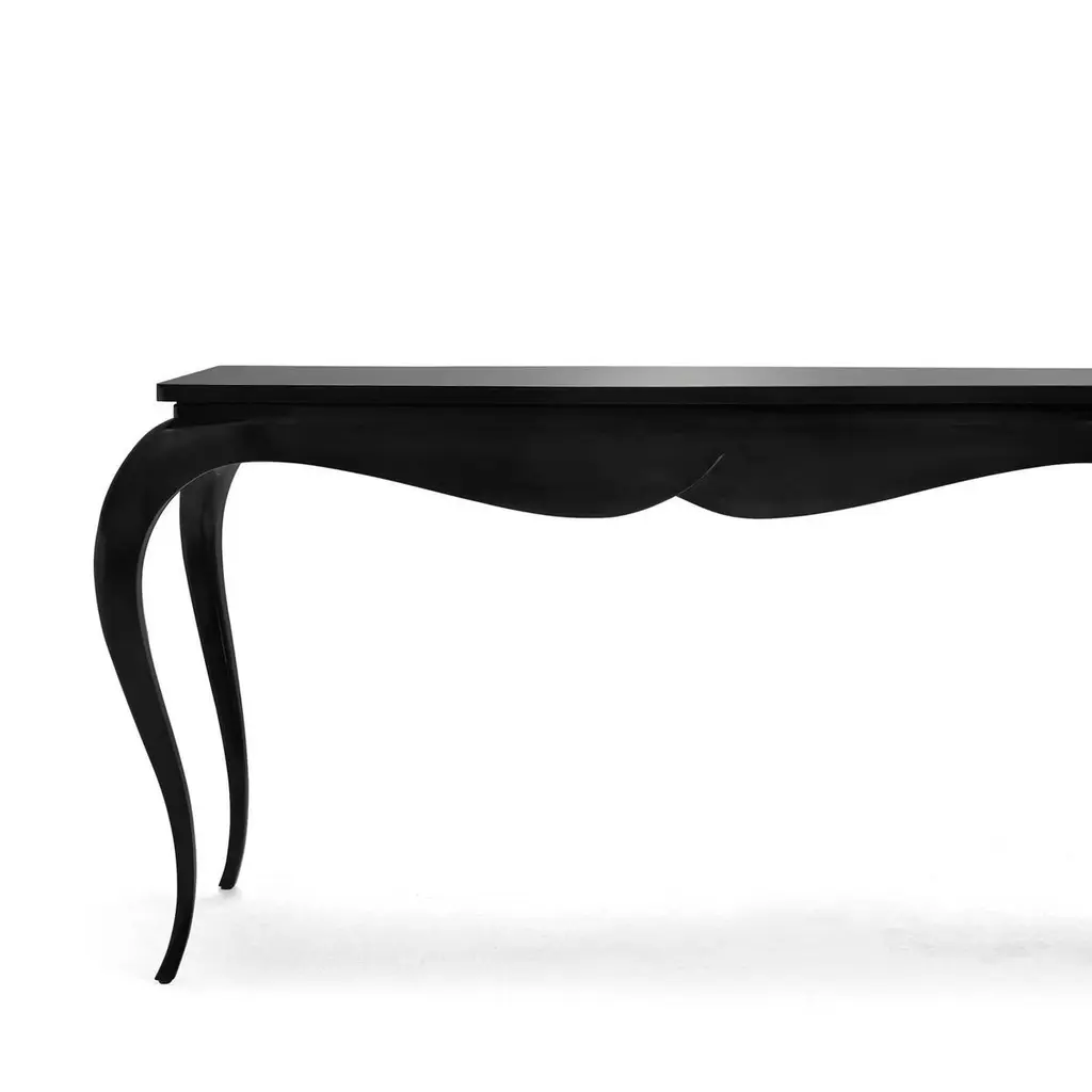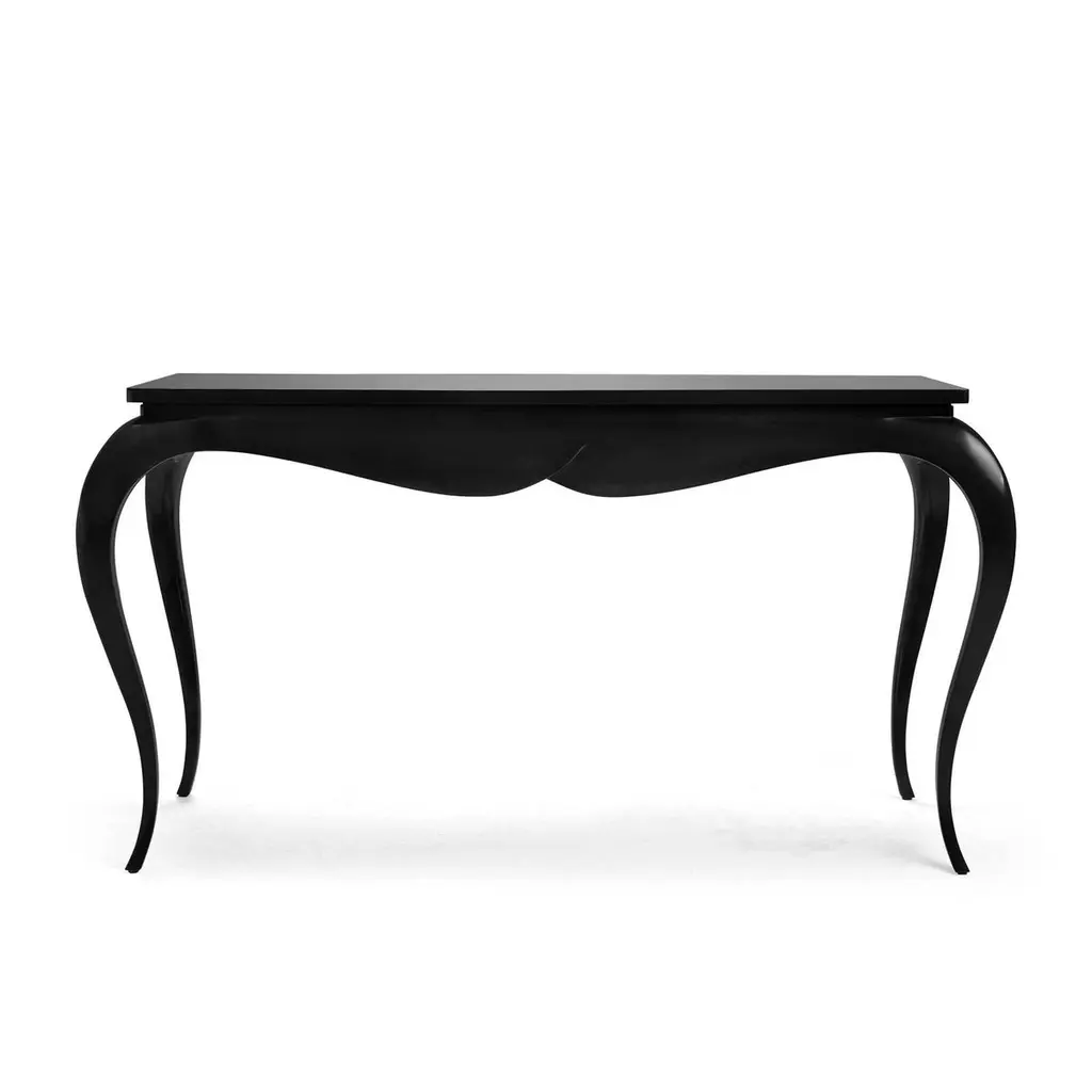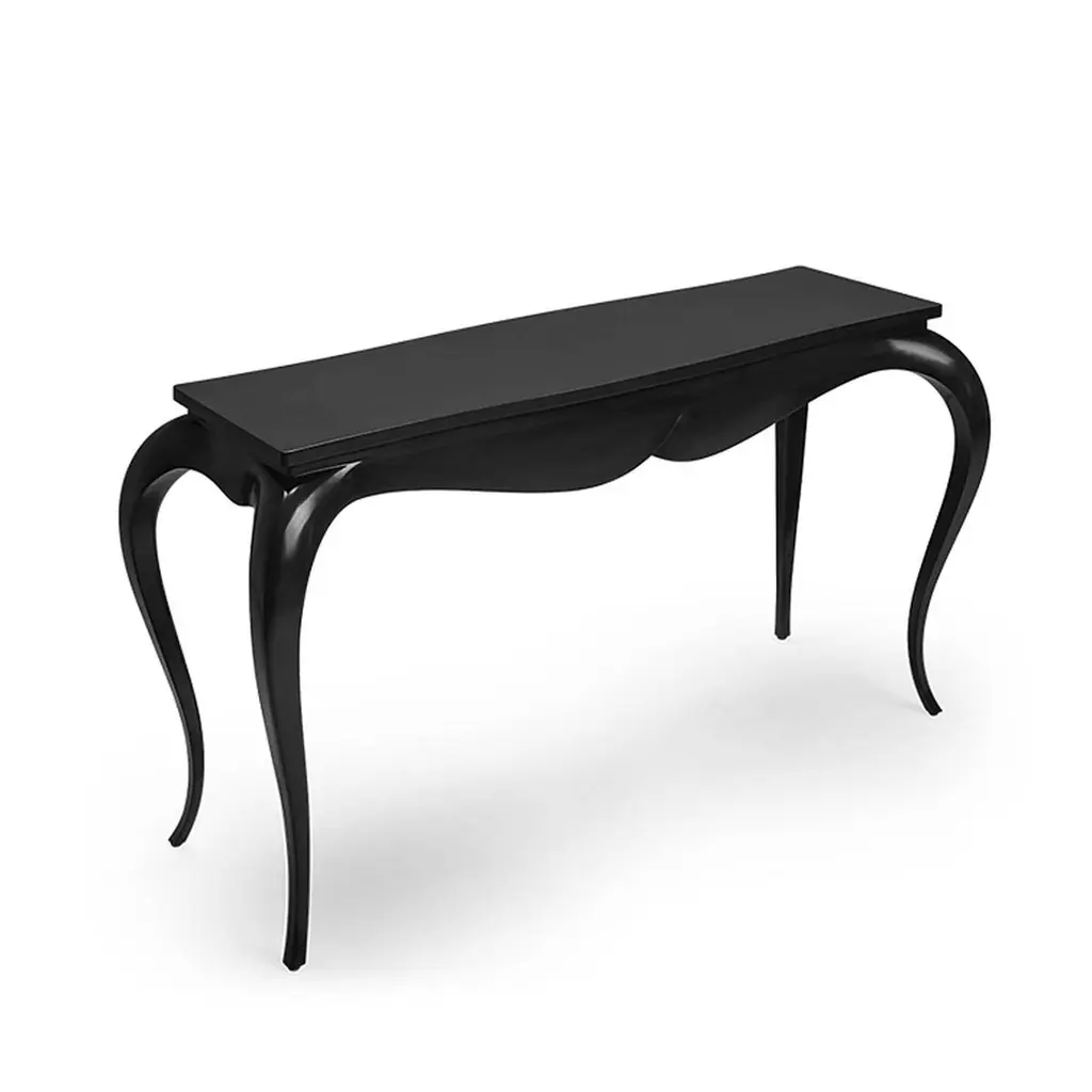 Console table stormy with hand-carvedstructure in black veneered mahogany wood.