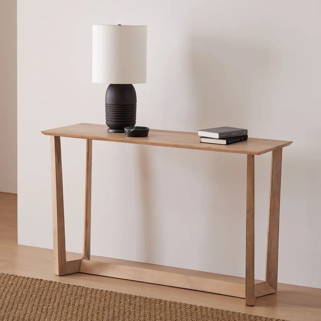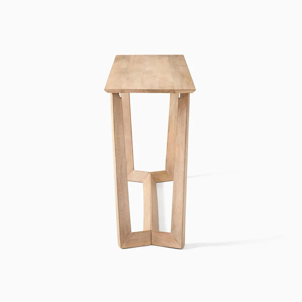 Defined by clean, Scandinavian-inspired lines. Sculptural base adds high style to this console. Made from sustainably sourced mango wood. Contract Grade for unmatched durability.