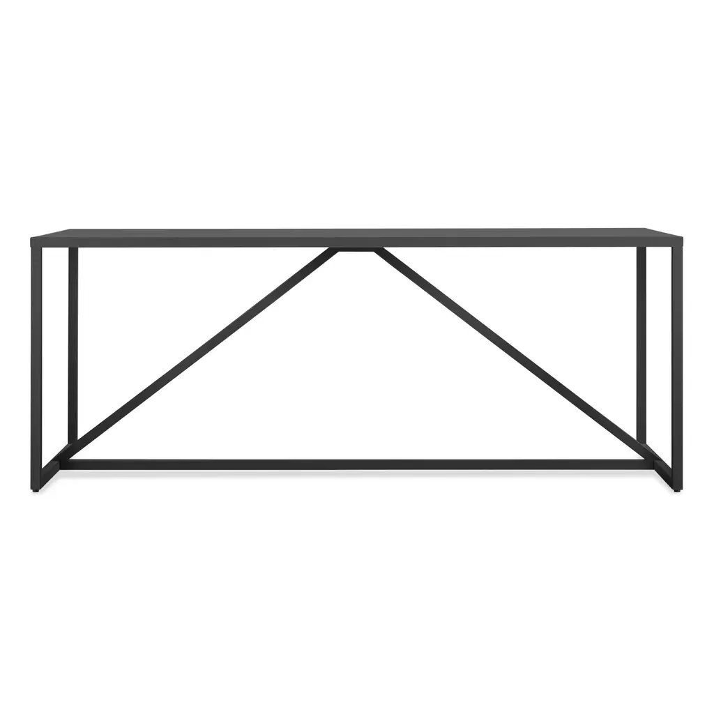 Structure and design are one with the Strut. A proud stance for any gathering. Powder-coated steel frame with a durable polyurethane finish over MDF for the top.