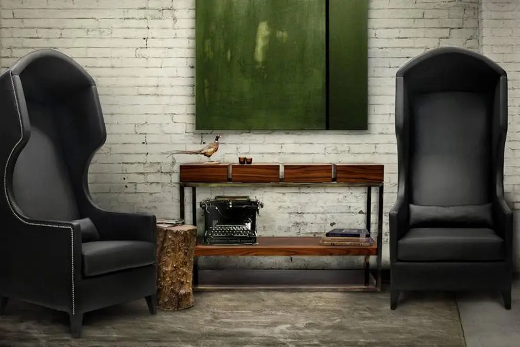 Subtle Console Table With Antique Brushed Brass And Poplar Wood Veneer