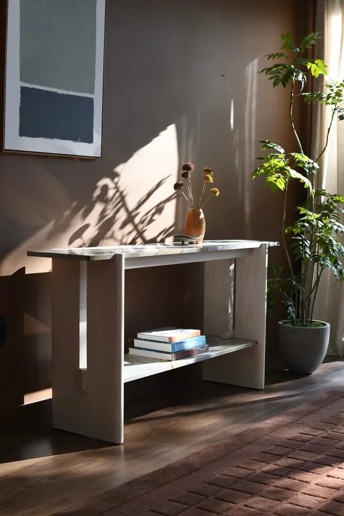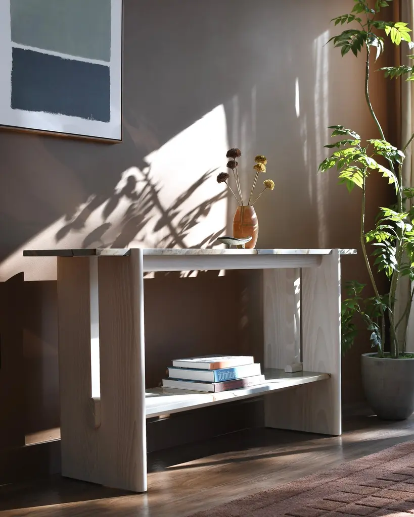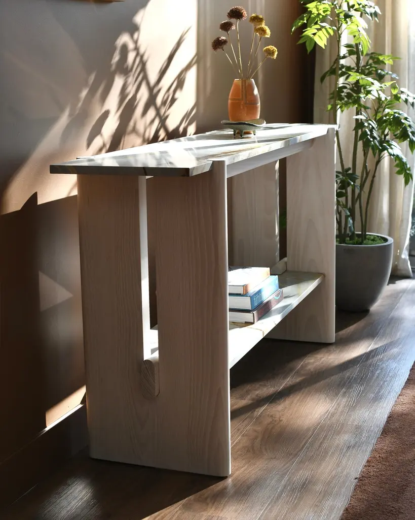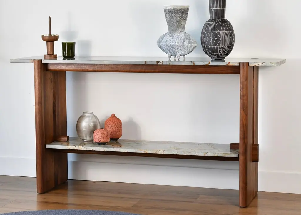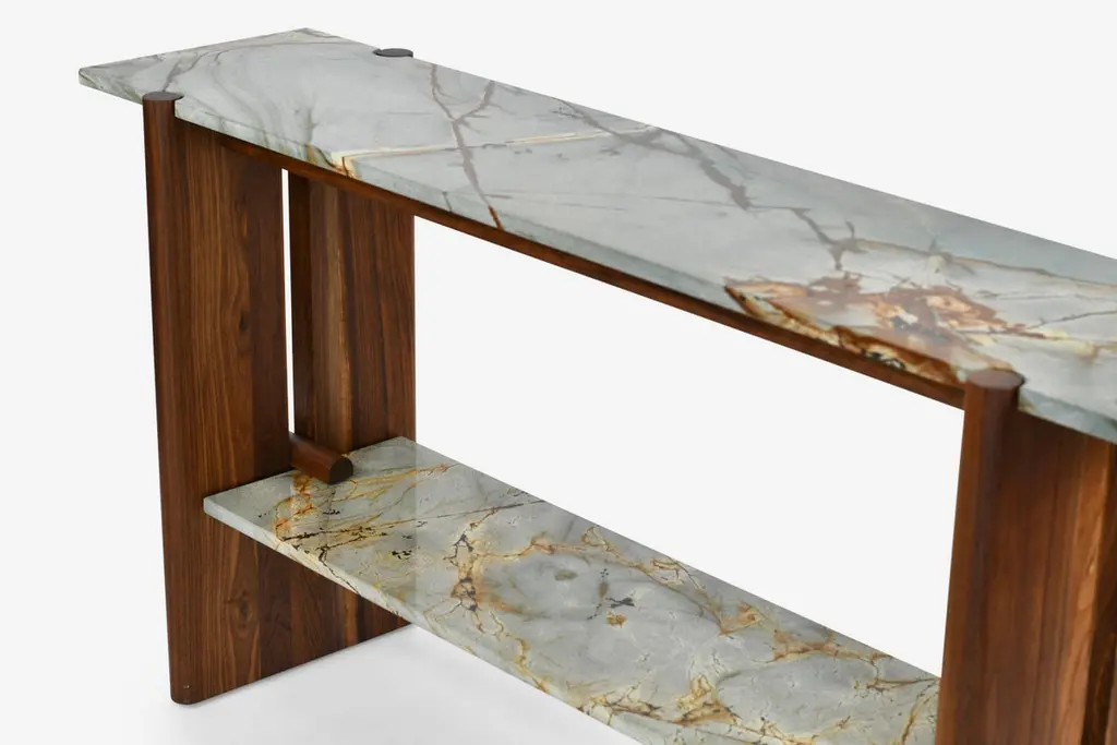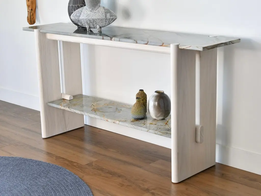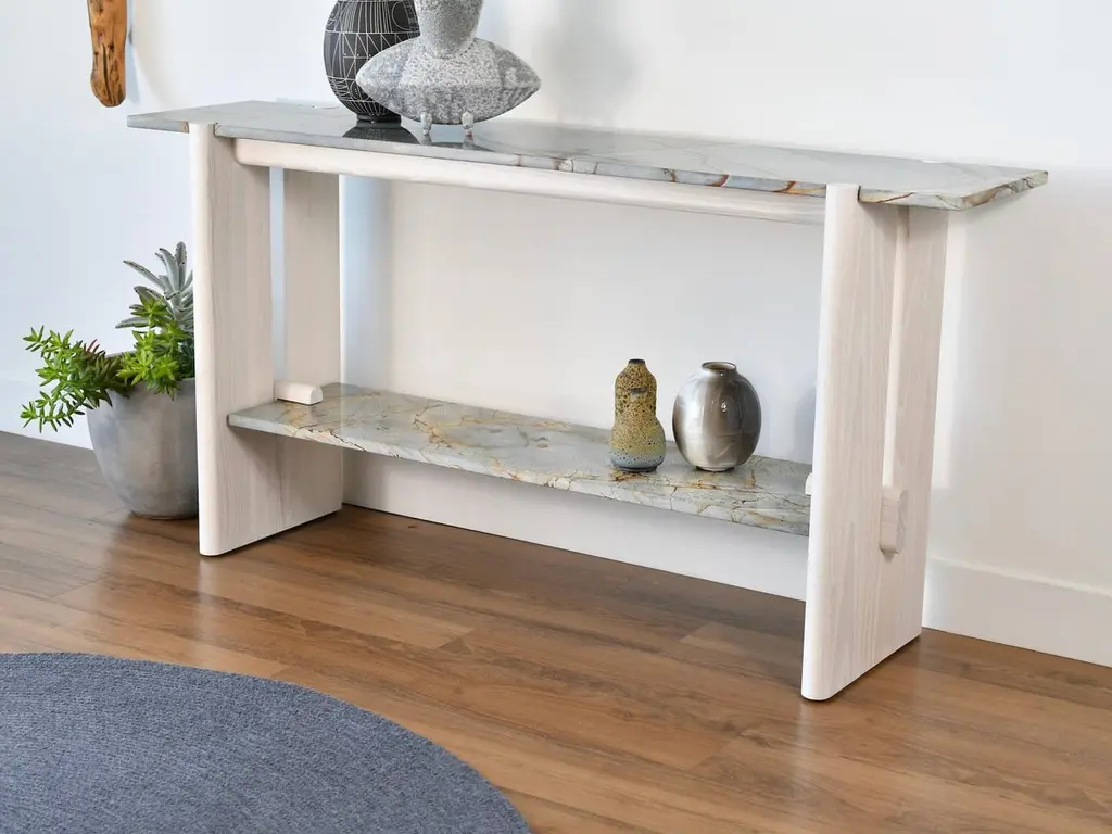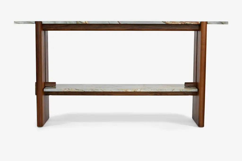 The Sulaco Console champions the foundations of the Danish Modern Movement. Rooted in functionality, every curve and feature is meticulously crafted to ensure aesthetics and utility go hand in hand. A modern sculpted design that embraces the traditions of natural materials applied in a sustainable and timeless approach. The lower shelf is fully removable providing an extra layer of versatility and functionality. FSC certified solid wood construction. Made to OrderAvailable in three wood types and seven standard finishes. Handcrafted in Los Angeles