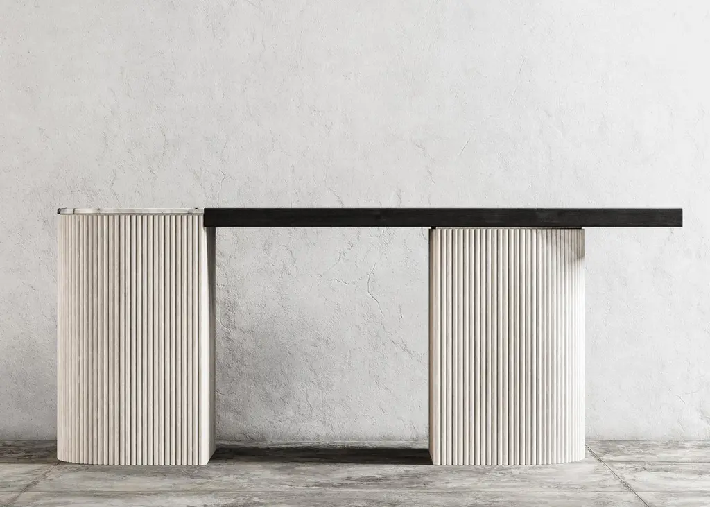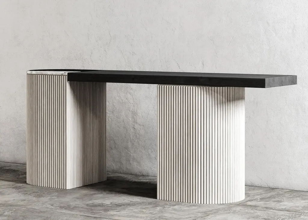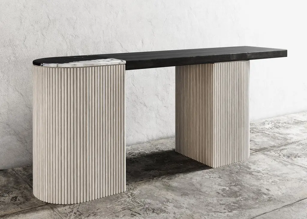 Sway Console - Modern Design With Sandy & Ebony Oak, Nero Marquina Marble