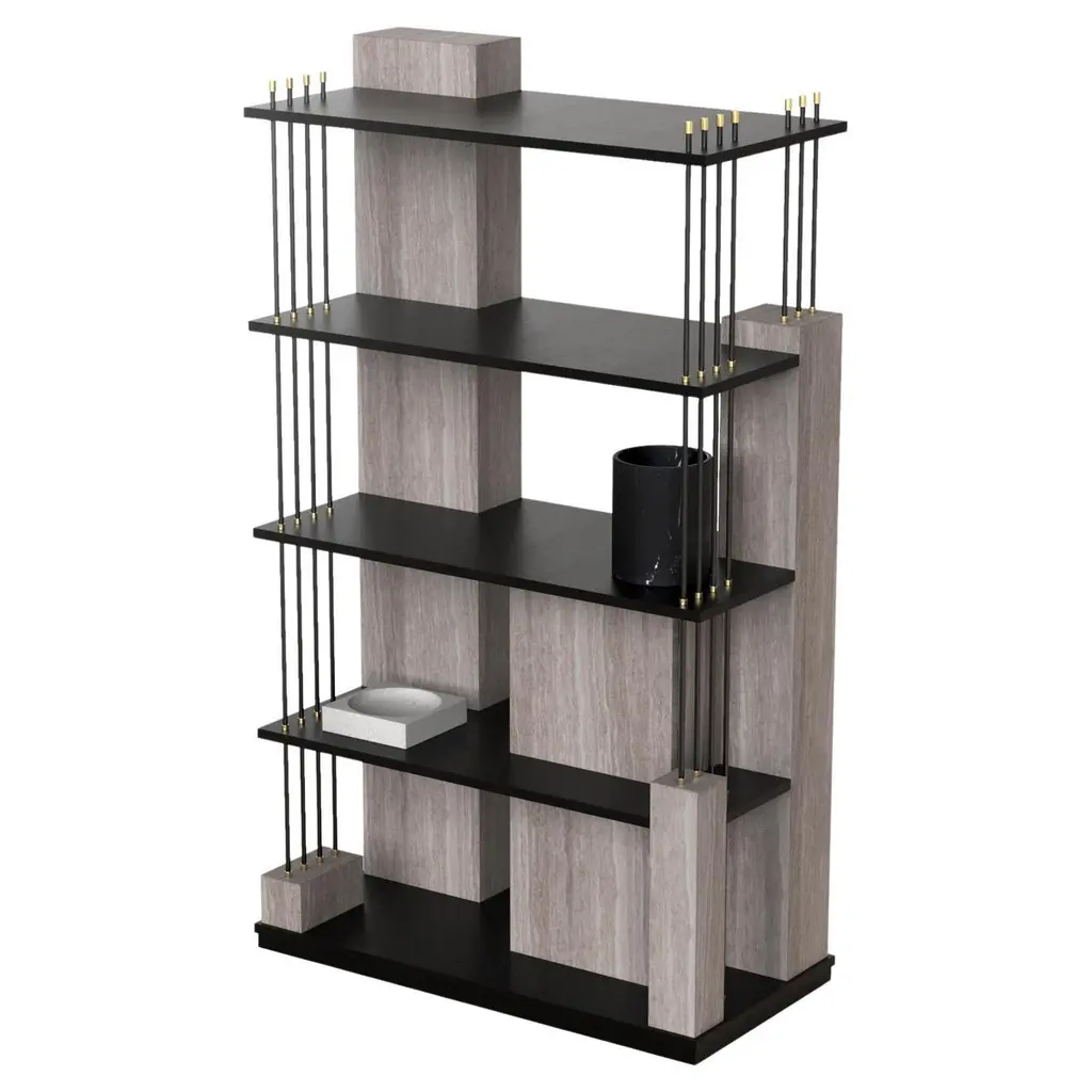 Console TableShagreen Embossed Leather WrappedTempest FinishPolished Nickel Paneled Back Three Suspended Shelves TiersRecessed Base
