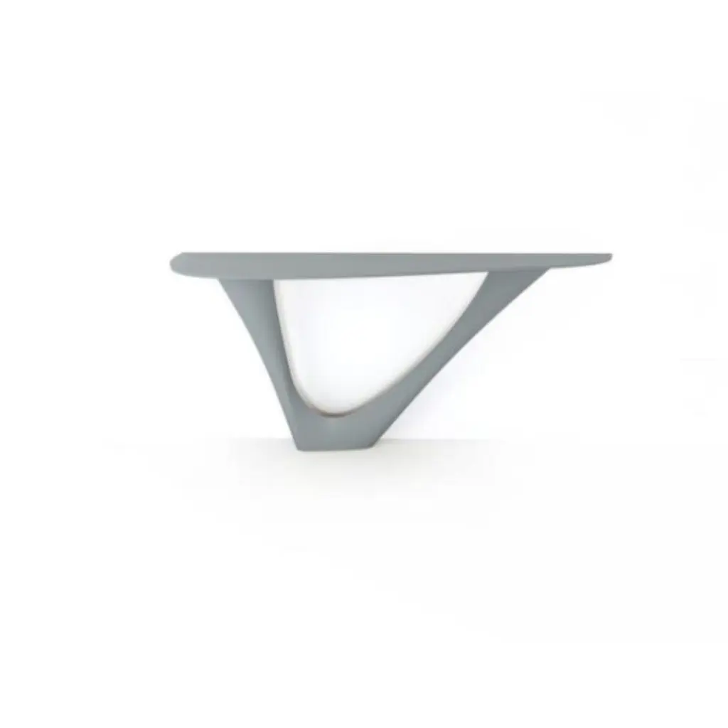 Tele grey g-console steel base with steel top Mono by ZietaDimensions: D 43 x W 159 x H 75 cm Material: Carbon steel. Also available in different colors and dimensions.G-Console is another bionic object in our collection. Created for smaller spaces, it gives another possibility in interior planning and at the same time preserves the unique shape of the original G-Table. Both objects were made for enthusiasts of bionic forms. Made with FiDU technology, it reminds of vines or tree roots. Nature symbolizes a constant changeability and harmony that comes out of it. A diverse structure refers to both natural forms and processes. G-Console comes in two versions – Mono and Duo.About Zieta: Zietas main goal is to deliver uniqueness and customization in design and construction while keeping the production, transport, and warehousing innovatively efficient.This is how they imagine the future world: Light, durable structures of customized applications produced on demand out of one-of-a-kind parts, yet efficiently.They use a computer-controlled production process. Customized pattern, customized form, customized function, one-of-a-kind product, and outstanding precision are what they deliver.You will find all of this philosophy reflected in the products. They research, they discover new possibilities, they play with forms and they deliver a beautiful, innovative, surprising outcome to people who love the design and who care about design development.They believe their work is a valuable contribution to the world of design not only by the unique beauty of the forms but most of all by opening ultra-innovative opportunities of forming and new paths for the world of the future.